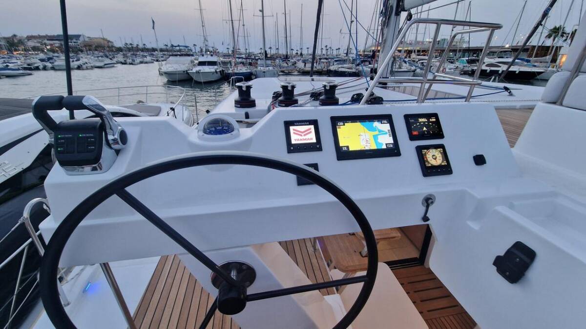 Die Aventura 45 "Art J" ist ausgestattet mit einem Großsegel und einem Genoa sowie einer Radar, Bimini Top, Autopilot, Sprayhood, Teak im Cockpit, GPS Kartenplotter - Cockpit.