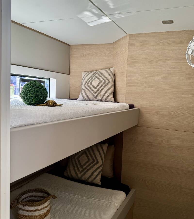 Die Aventura 45 "Art J" bietet besonderen Komfort mit folgenden Ausstattungsmerkmalen: Generator, Klimaanlage, Cockpit Kissen, Inverter, Elektrische Toilette, Spülmaschine, Solar Panel.