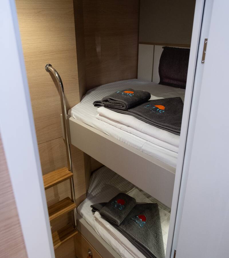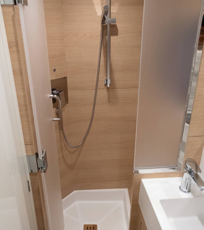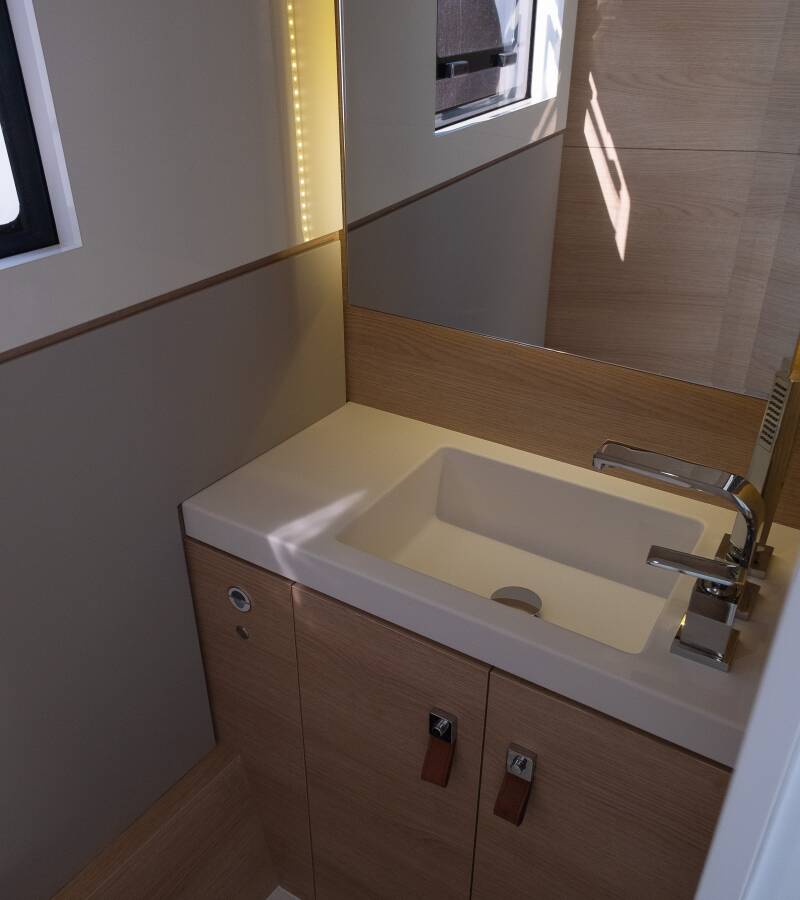 Die Aventura 45 "Aura" bietet besonderen Komfort mit folgenden Ausstattungsmerkmalen: Generator, Klimaanlage, Cockpit Kissen, Badeplattform, Inverter, Elektrische Toilette, Solar Panel.