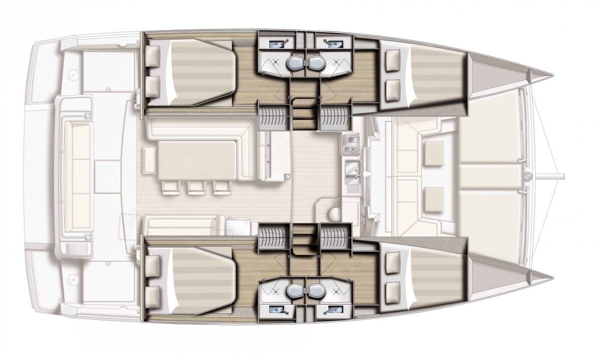 Die Bali 4.1 "Fortuna II" bietet besonderen Komfort mit folgenden Ausstattungsmerkmalen: Generator, Klimaanlage, Tiefkühlfach, Cockpit Kissen, Elektrische Toilette, Solar Panel.
