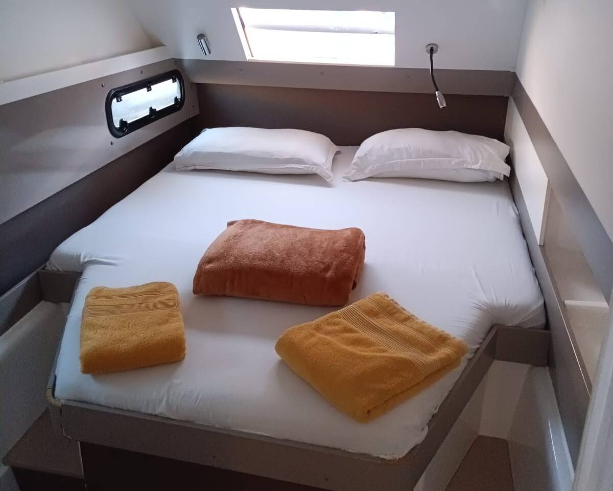 Die Bali 4.1 "NIELTHI " ist ausgestattet mit einem Großsegel und einem Genoa sowie einer Bimini Top, Autopilot.