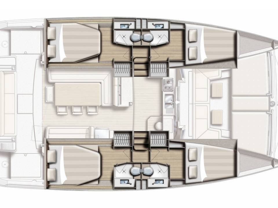 Die Bali 4.1 "Ocean Oasis" bietet besonderen Komfort mit folgenden Ausstattungsmerkmalen: Klimaanlage, Tiefkühlfach, Cockpit Kissen, Inverter, Elektrische Toilette, Solar Panel, Griller im Cockpit.