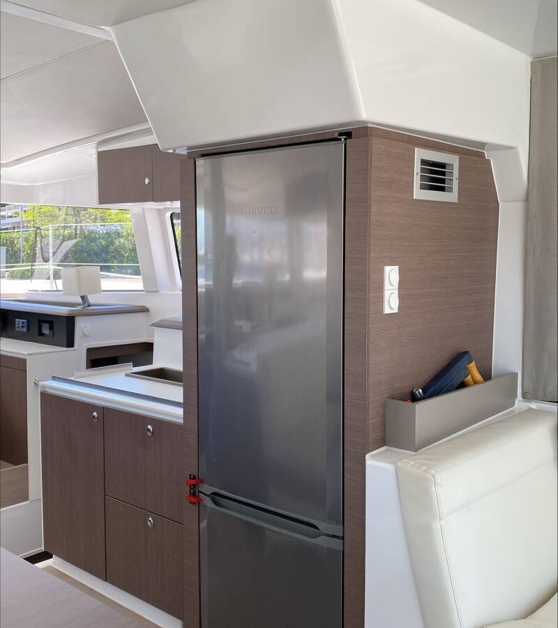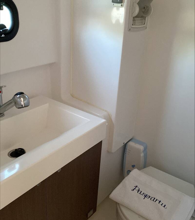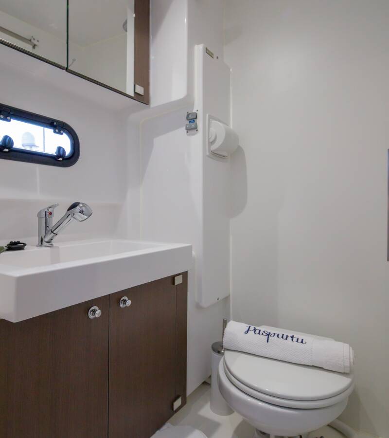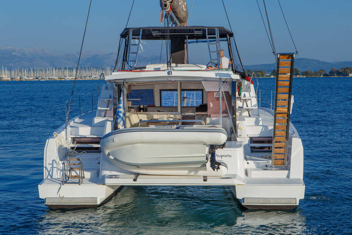 Die Bali 4.1 "Paspartu" bietet besonderen Komfort mit folgenden Ausstattungsmerkmalen: Generator, Klimaanlage, Tiefkühlfach, Cockpit Kissen, Badeplattform, Inverter, Elektrische Toilette, Solar Panel.