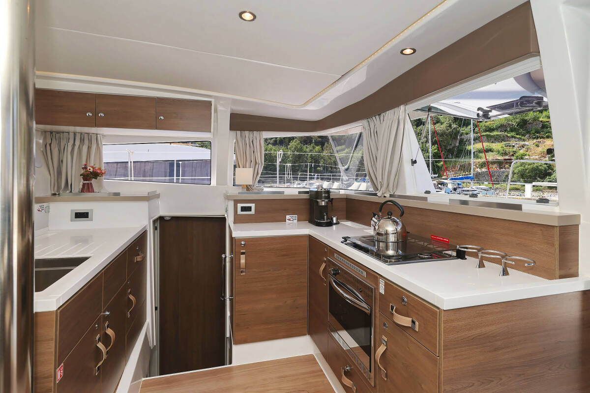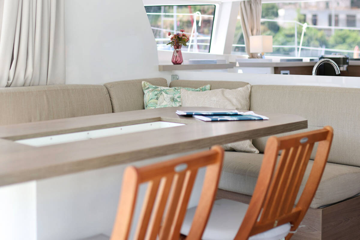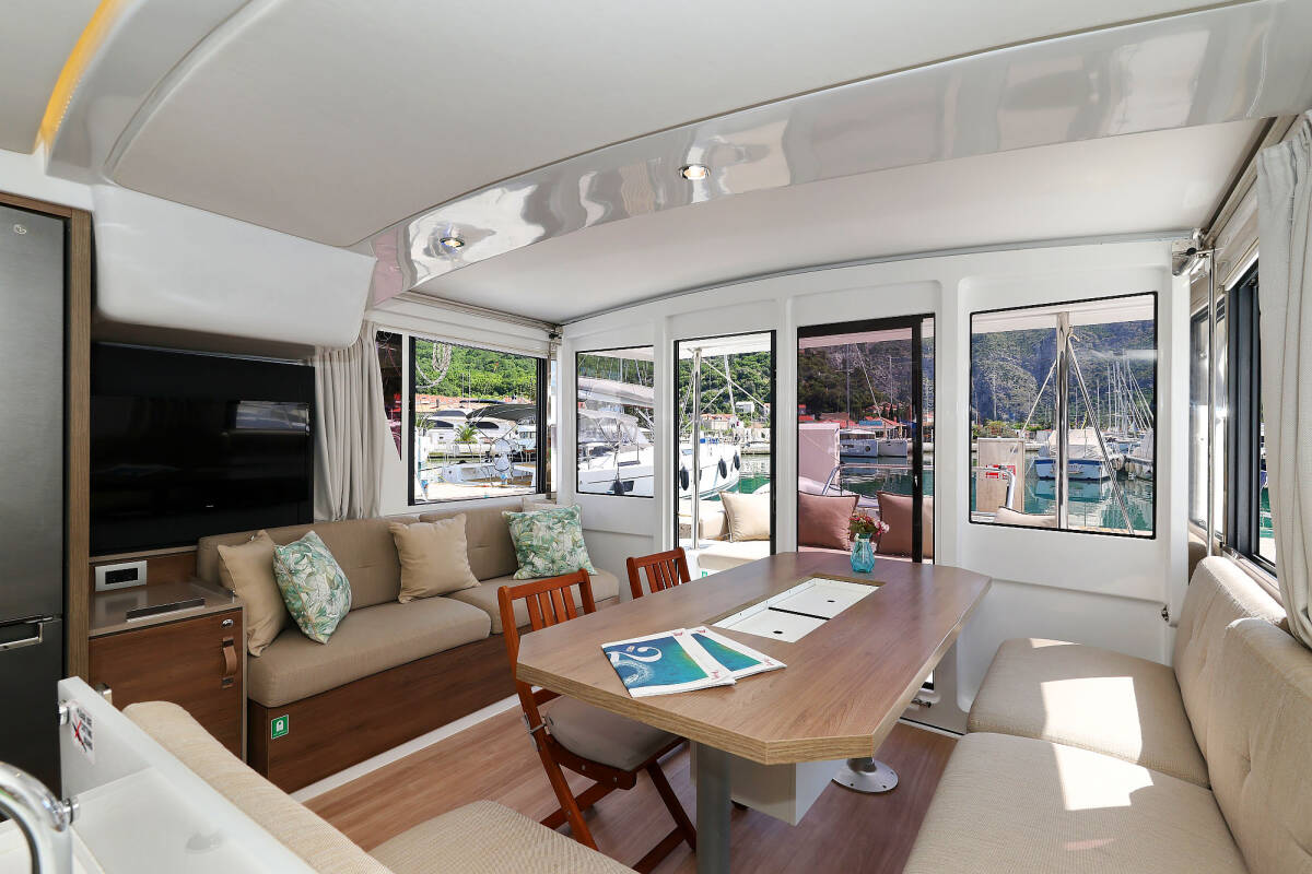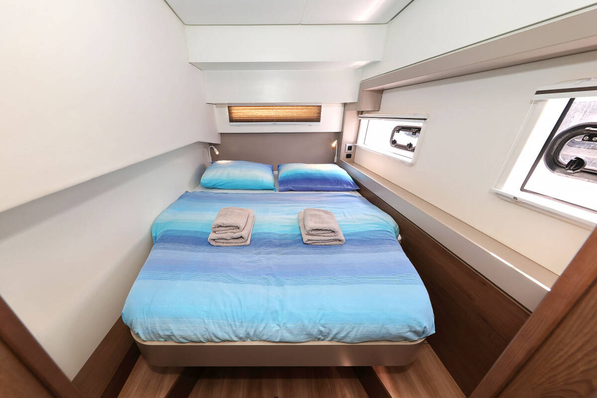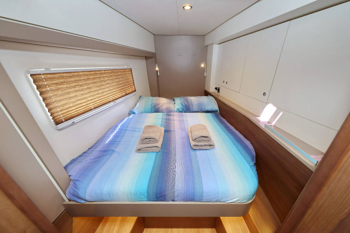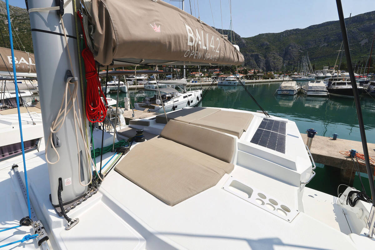 Die Bali 4.2 "Aglaia" bietet besonderen Komfort mit folgenden Ausstattungsmerkmalen: Tiefkühlfach, Cockpit Kissen, Badeplattform, Inverter, Elektrische Toilette, Solar Panel.