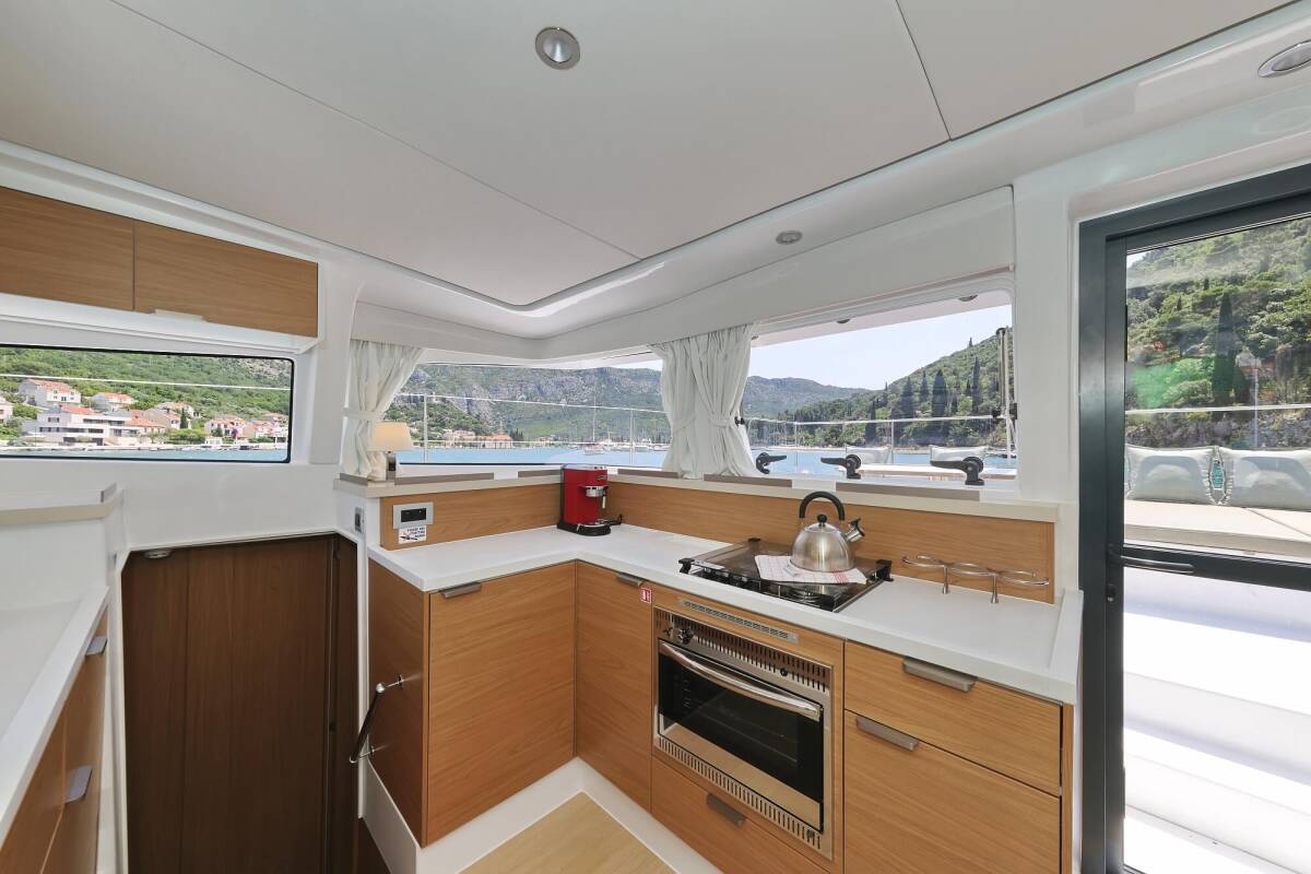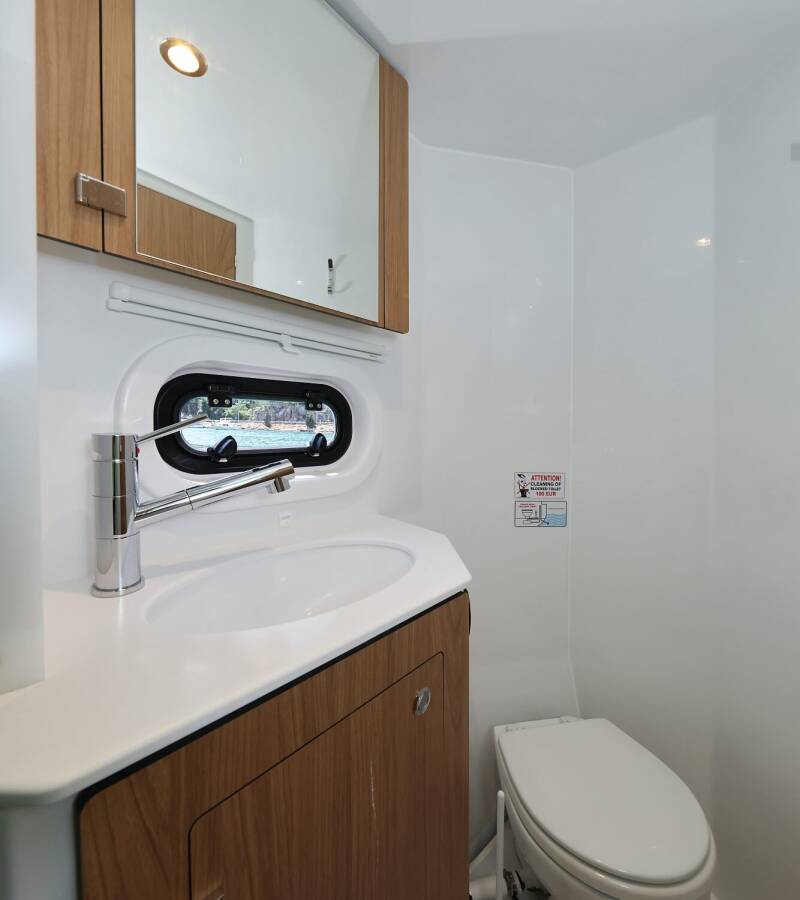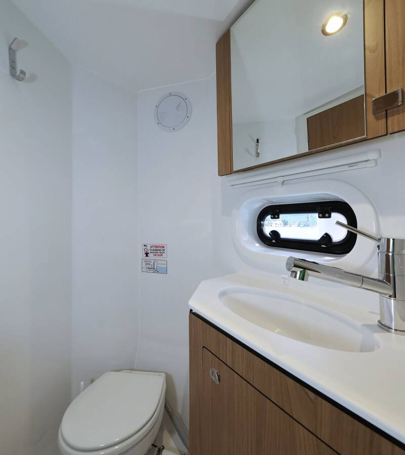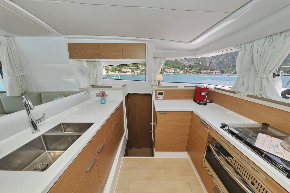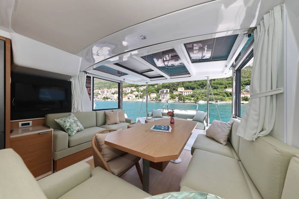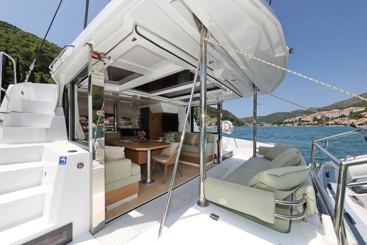 Die Bali 4.2 "Chèrie" bietet besonderen Komfort mit folgenden Ausstattungsmerkmalen: Klimaanlage, Tiefkühlfach, Cockpit Kissen, Badeplattform, Inverter, Elektrische Toilette, Solar Panel.