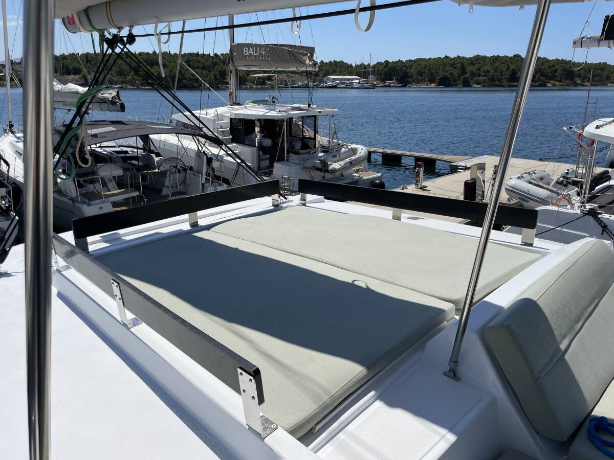 Die Bali 4.2 "Jackpot" ist ausgestattet mit einem Großsegel und einem Genoa sowie einer Bimini Top, Autopilot, Sprayhood, Teak im Cockpit, GPS Kartenplotter - Cockpit.