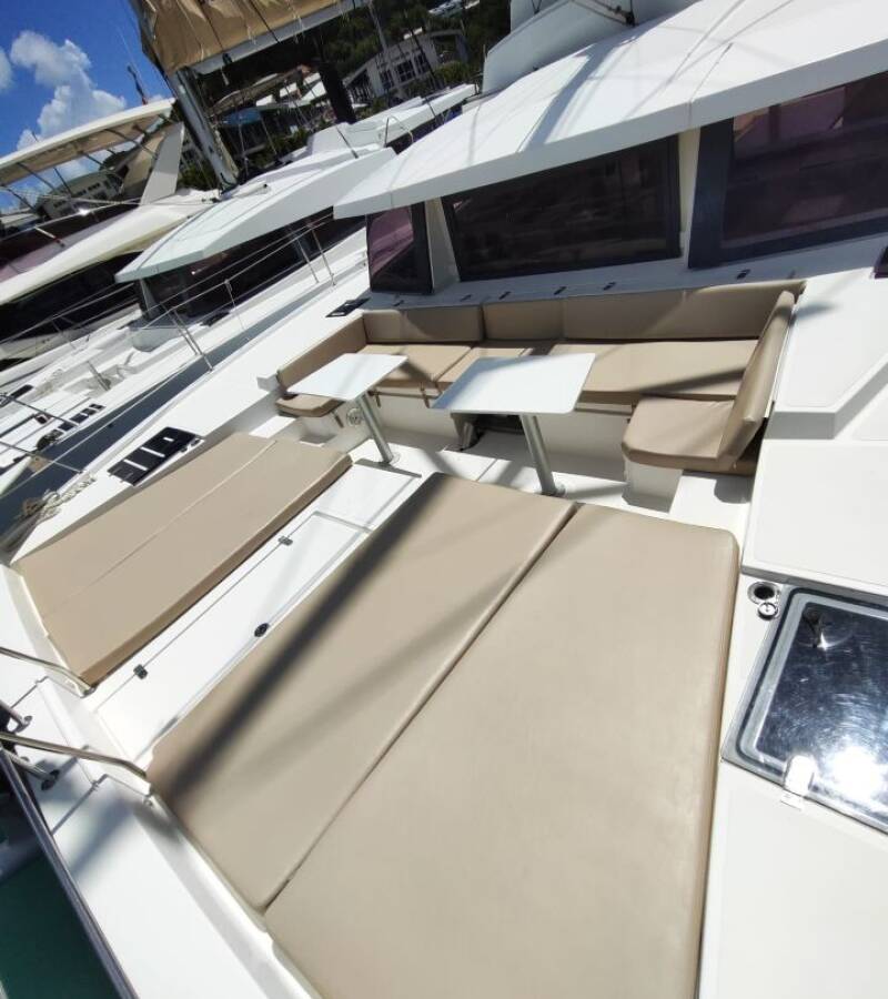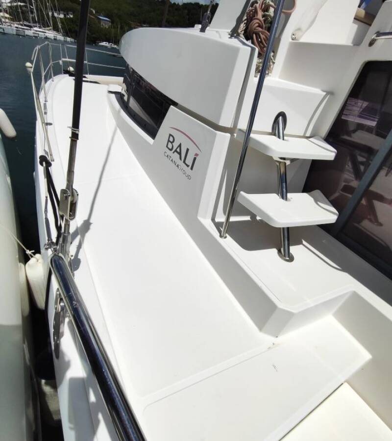 Die Bali 4.3 "JULIA II " ist ausgestattet mit einem Großsegel und einem Genoa sowie einer Bimini Top, Autopilot.