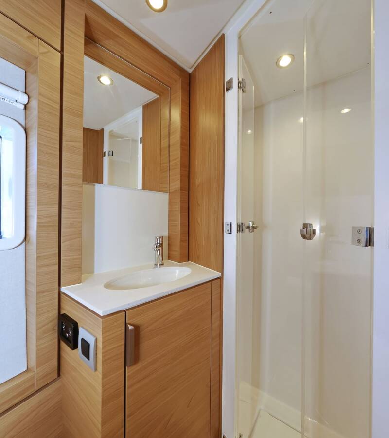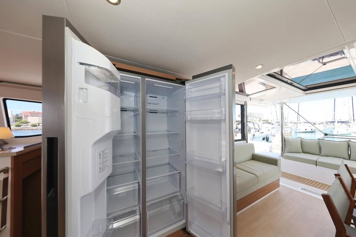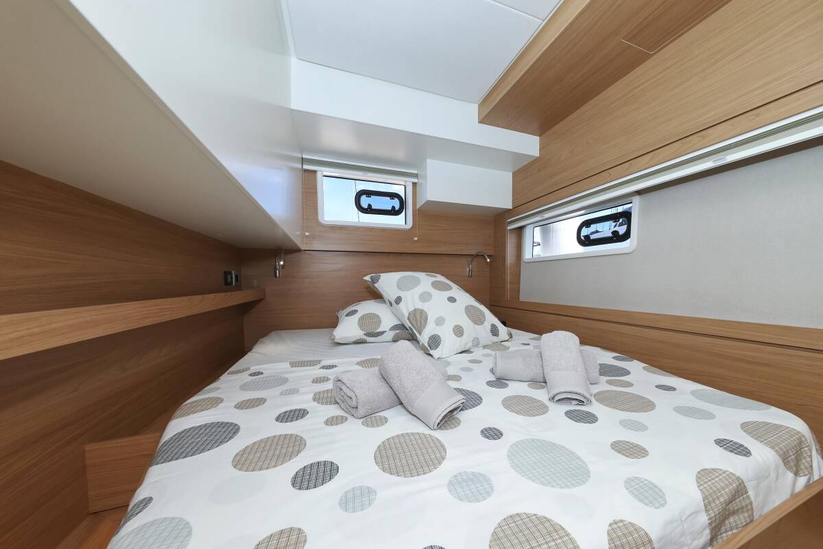 Die Bali 4.4 "Breeze" bietet besonderen Komfort mit folgenden Ausstattungsmerkmalen: Generator, Klimaanlage, Tiefkühlfach, Cockpit Kissen, Badeplattform, Inverter, Elektrische Toilette, Solar Panel.