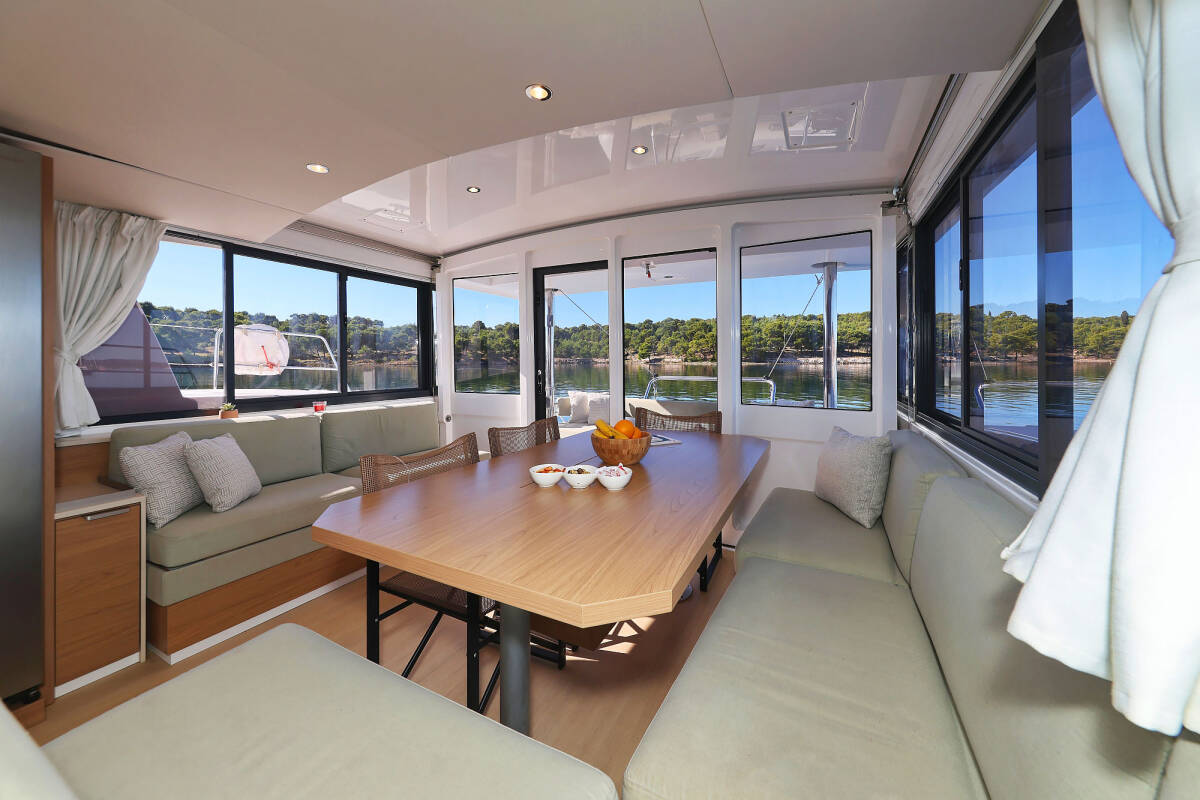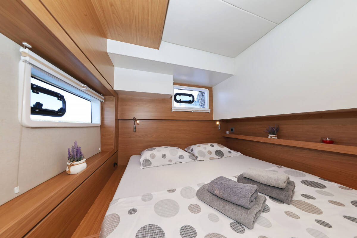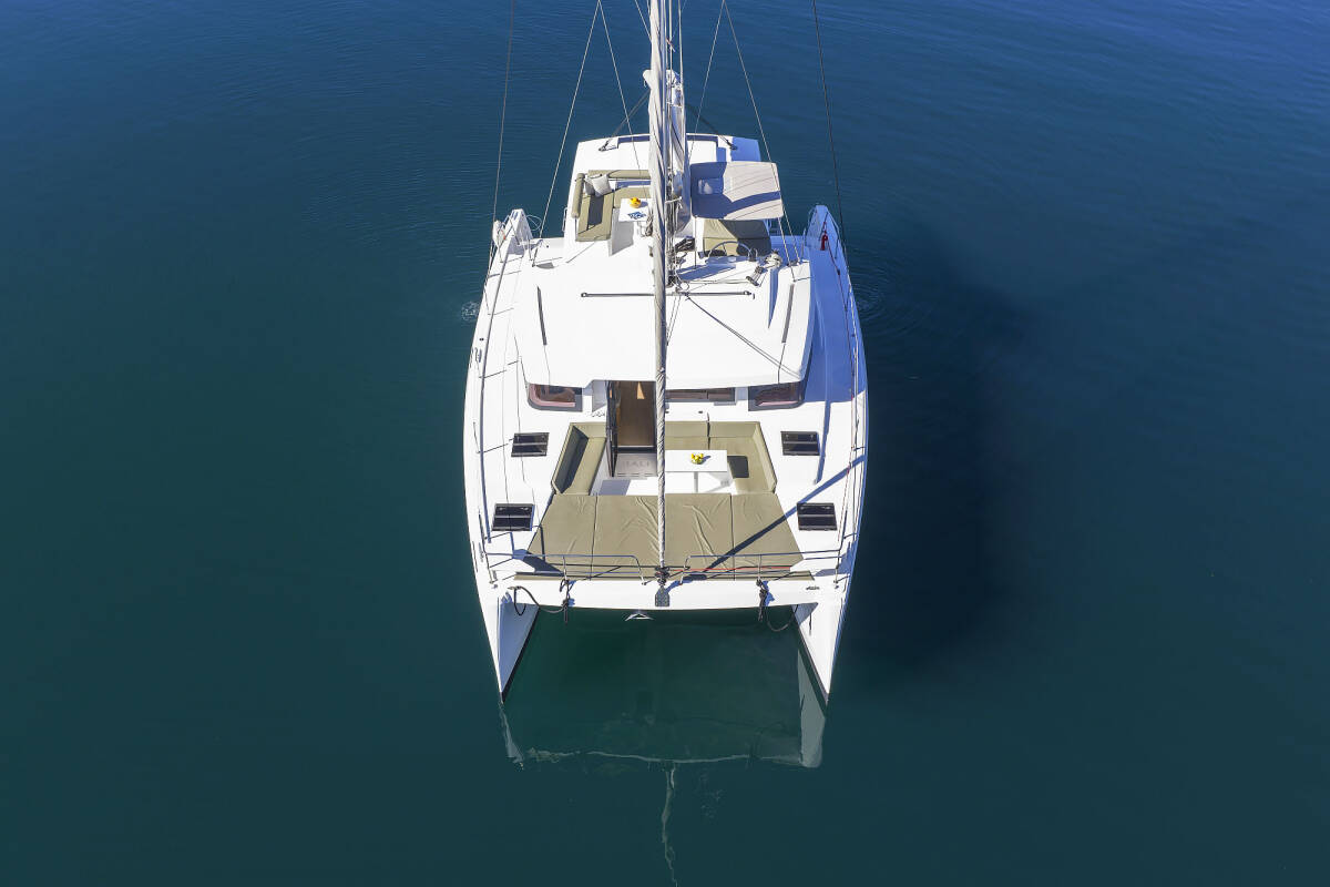 Die Bali 4.4 "Mela" bietet besonderen Komfort mit folgenden Ausstattungsmerkmalen: Generator, Klimaanlage, Tiefkühlfach, Badeplattform, Inverter, Solar Panel.