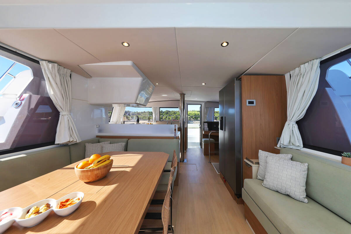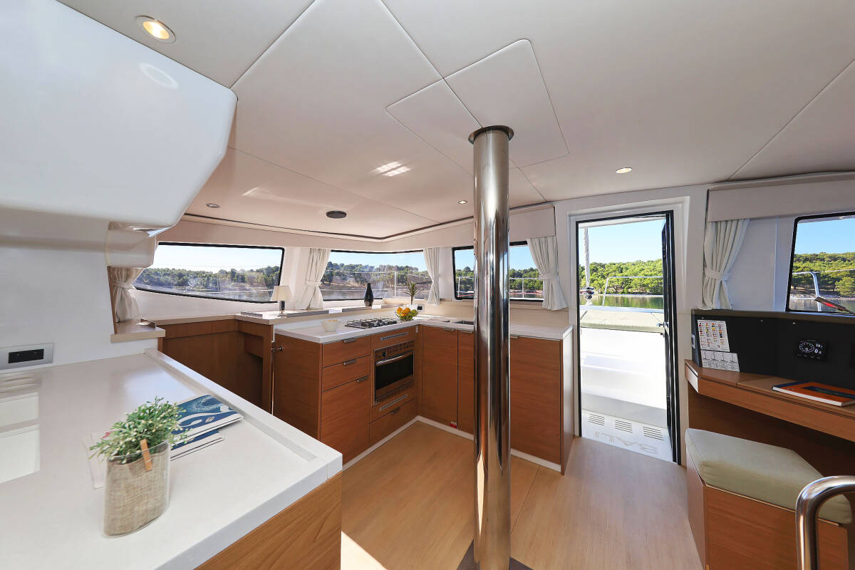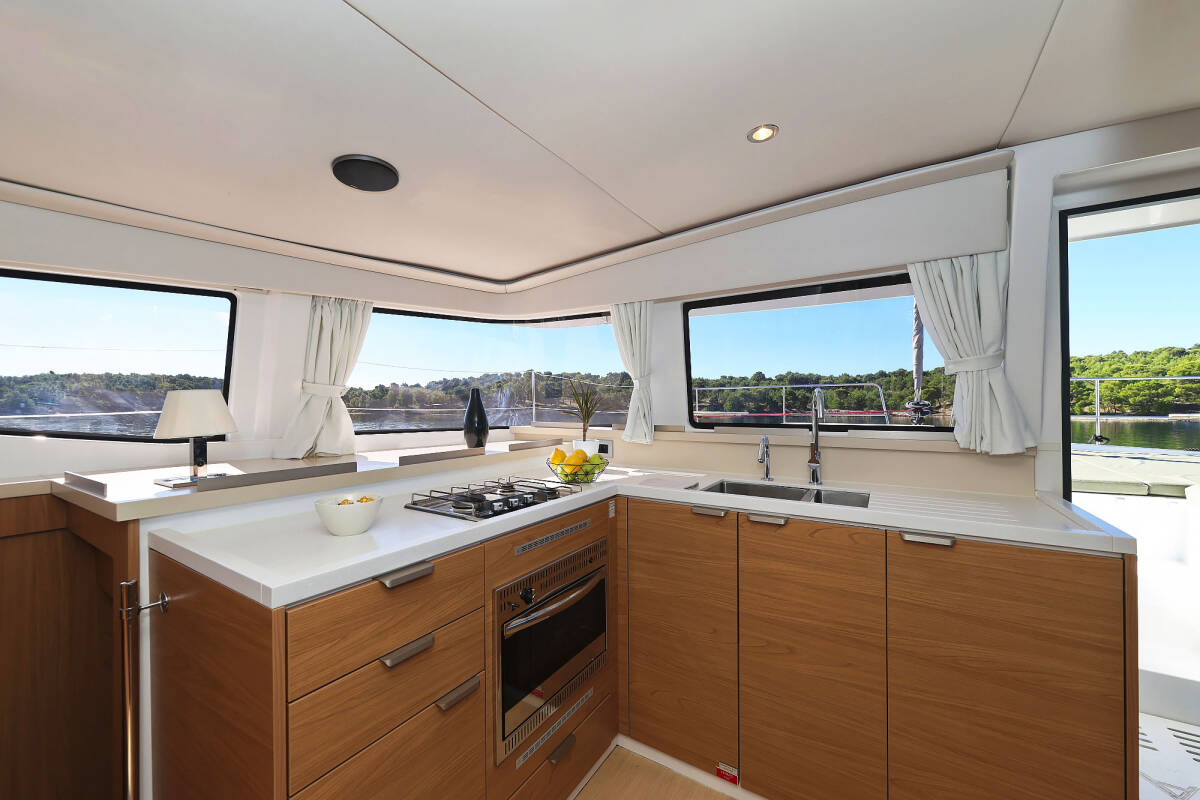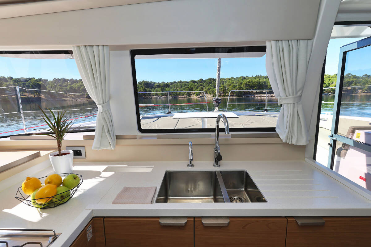 Die Bali 4.4 "Mela" bietet besonderen Komfort mit folgenden Ausstattungsmerkmalen: Generator, Klimaanlage, Tiefkühlfach, Badeplattform, Inverter, Solar Panel.