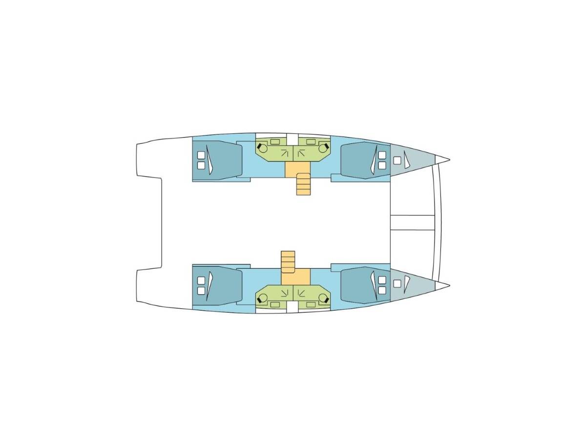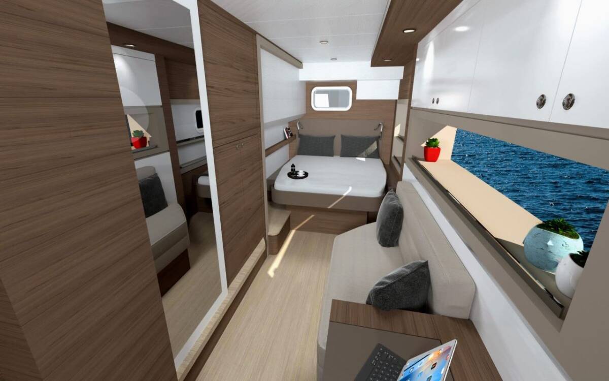 Die Bali 4.4 "TOPAZ II" ist ausgestattet mit einem Großsegel und einem Genoa sowie einer Bimini Top, Autopilot.