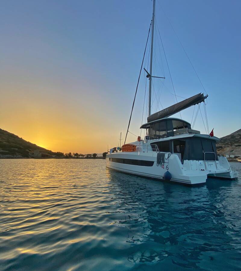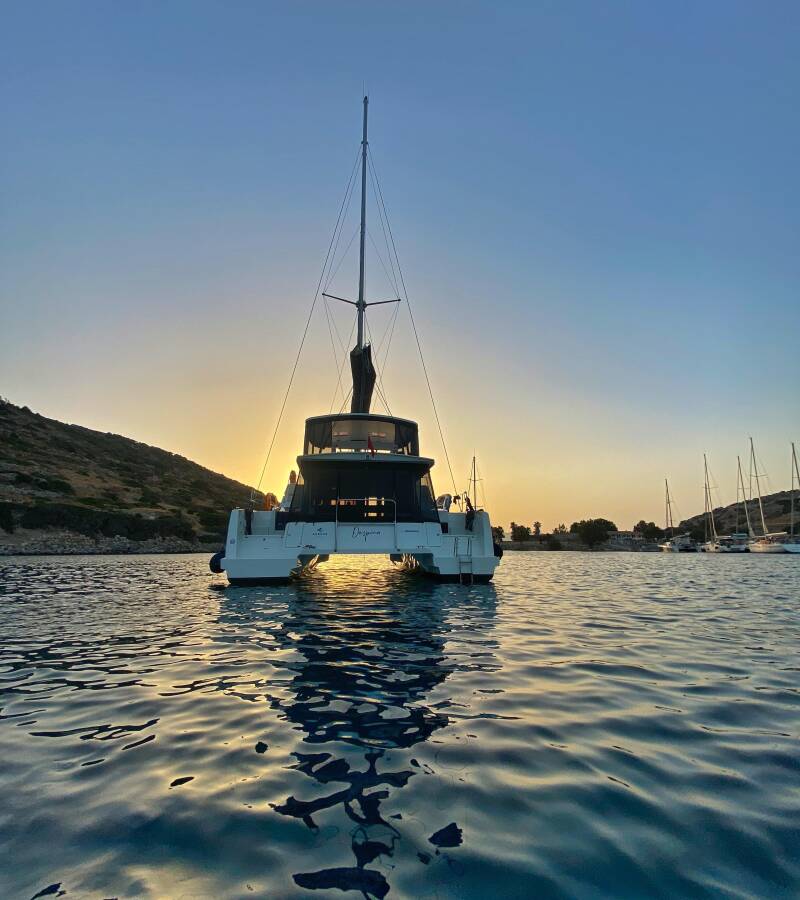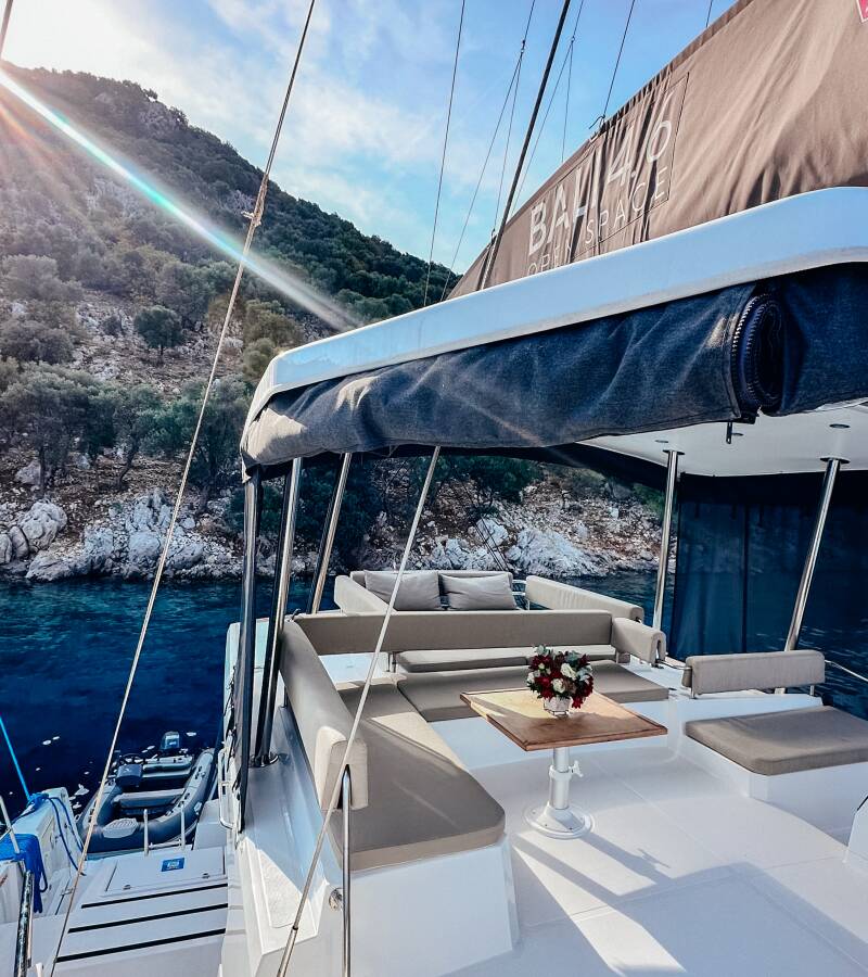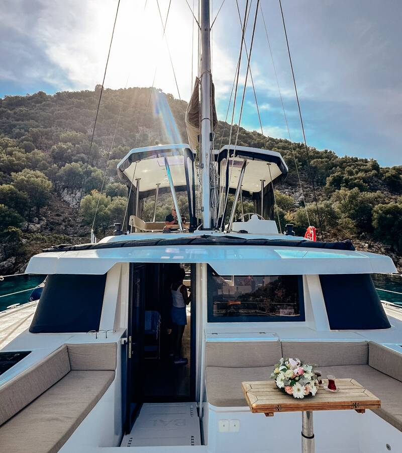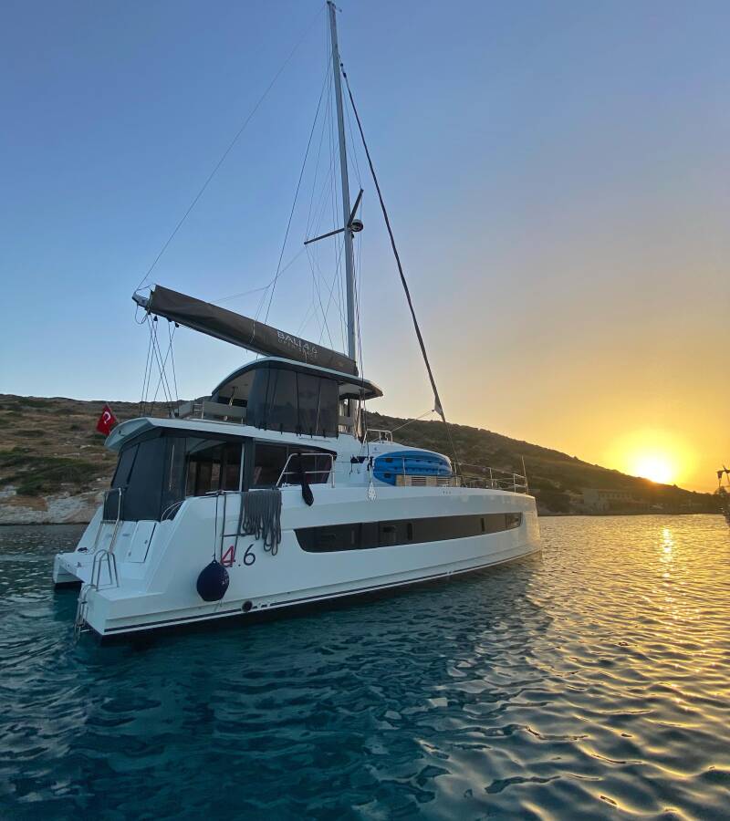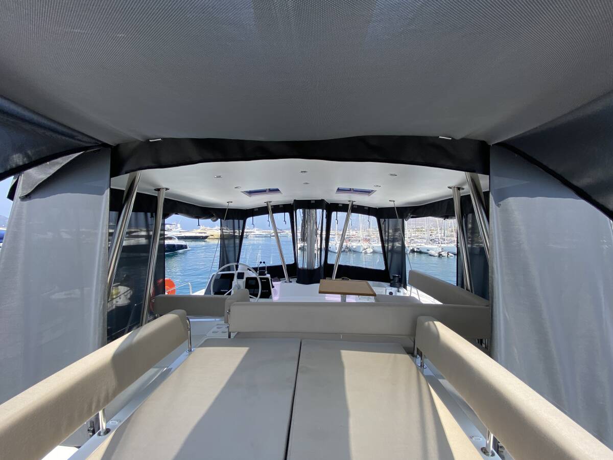 Die Bali 4.6 "Despina" ist ausgestattet mit einem Großsegel und einem Genoa sowie einer Bimini Top, Autopilot, Sprayhood.