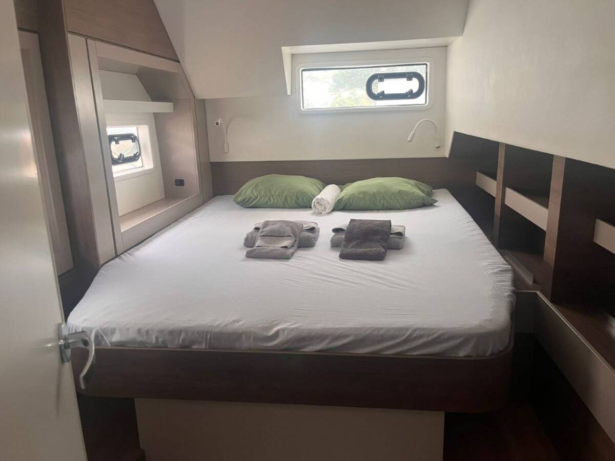 Die Bali 4.6 "THONIC DREAM" ist ausgestattet mit einem Großsegel und einem Genoa sowie einer Bimini Top, Autopilot.