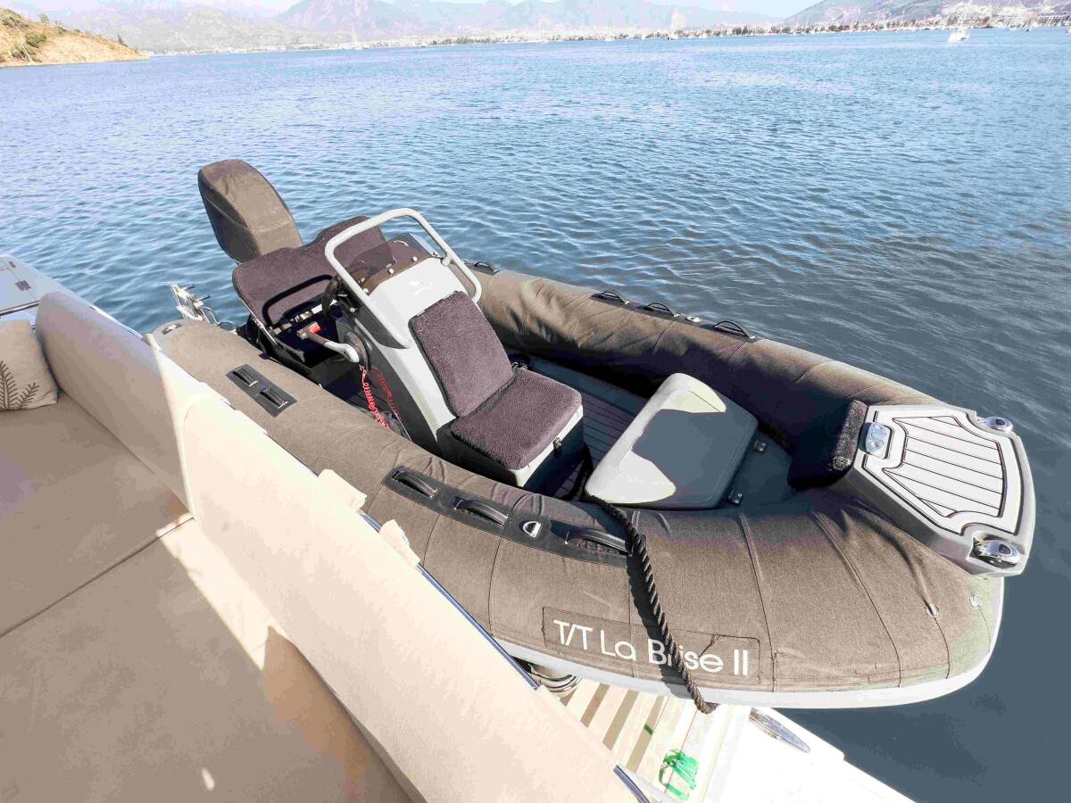Die Bali 5.4 "La Brise 2" ist ausgestattet mit einem Großsegel und einem Genoa sowie einer Bimini Top, Autopilot.