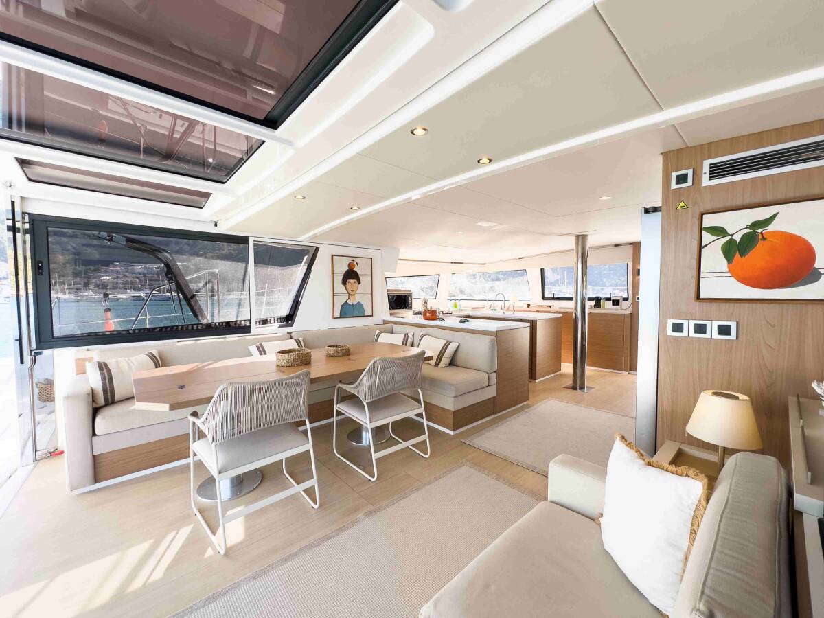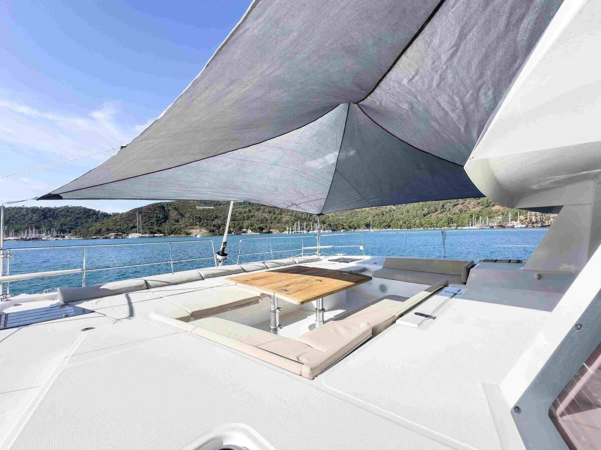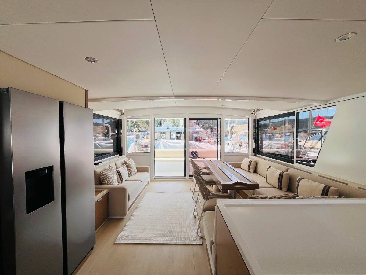 Die Bali 5.4 "La Brise 2" bietet besonderen Komfort mit folgenden Ausstattungsmerkmalen: Generator, Klimaanlage, Cockpit Kissen, Inverter, Spülmaschine, Solar Panel.