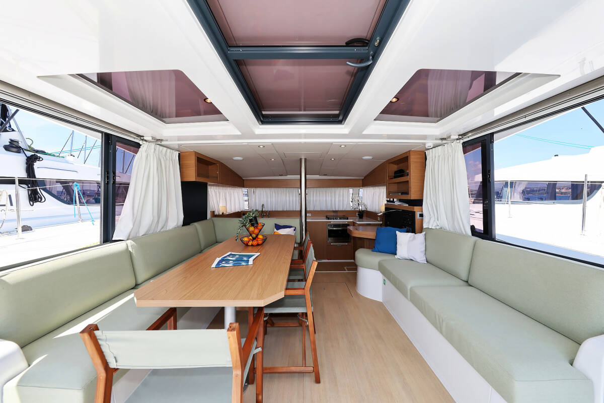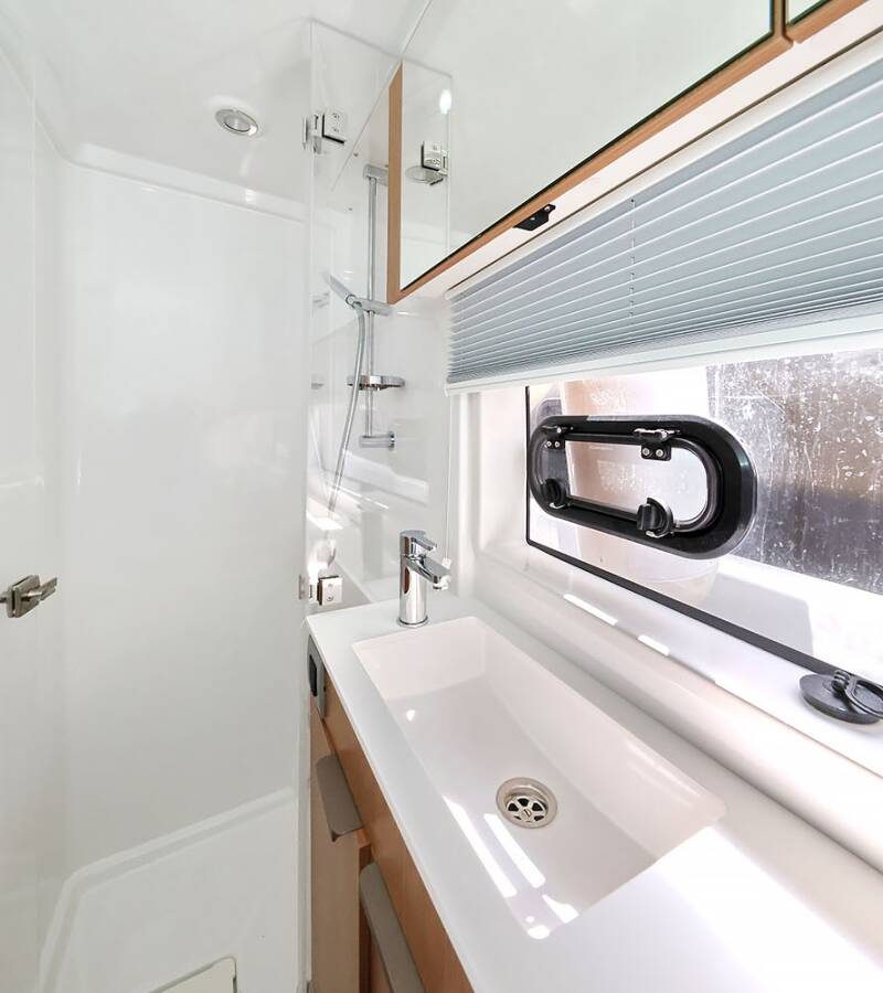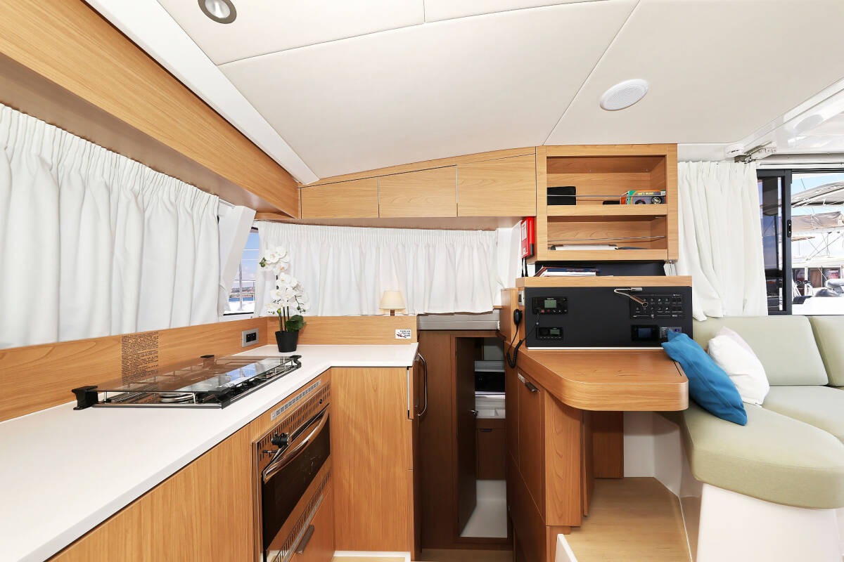 Die Bali Catsmart "Aventurier" bietet besonderen Komfort mit folgenden Ausstattungsmerkmalen: Tiefkühlfach, Cockpit Kissen, Badeplattform, Inverter, Solar Panel.