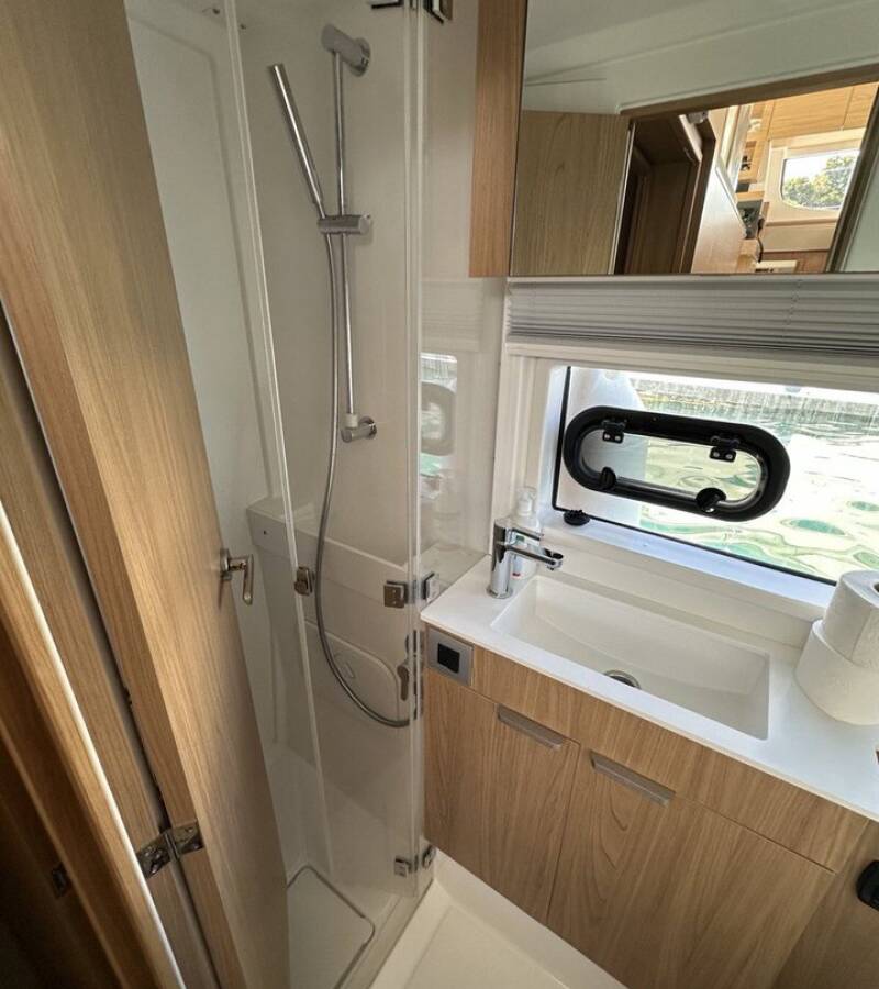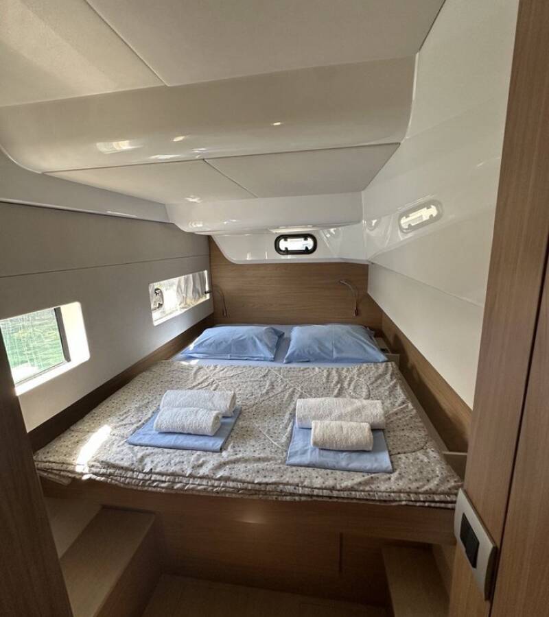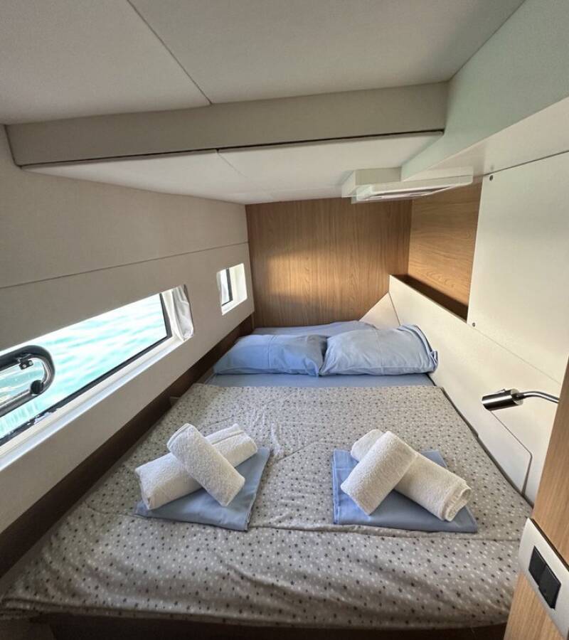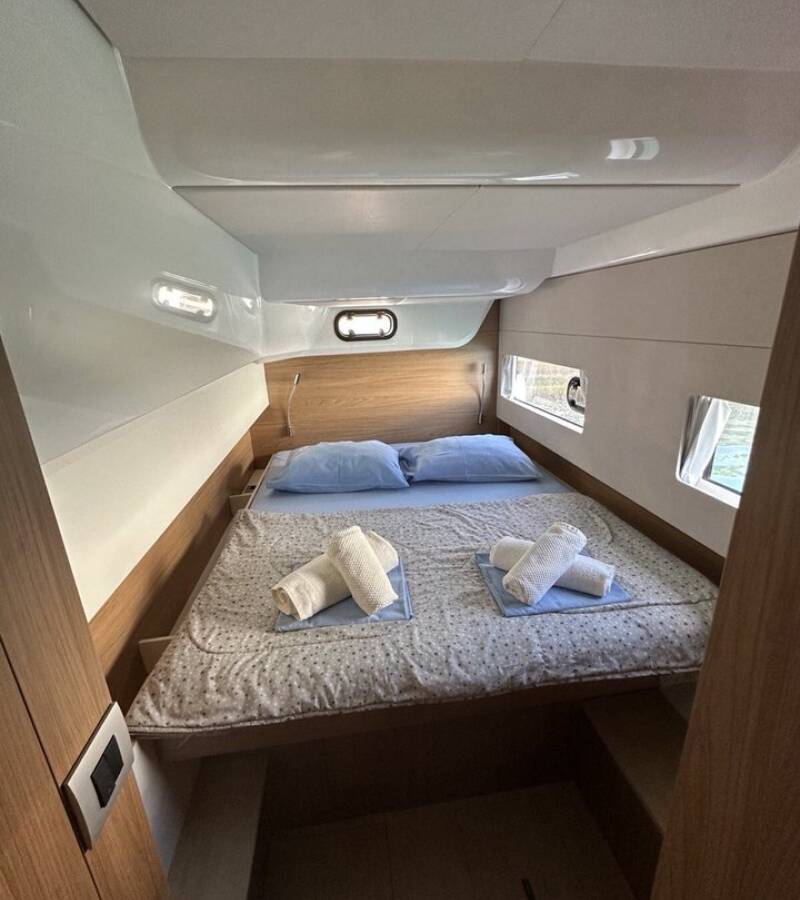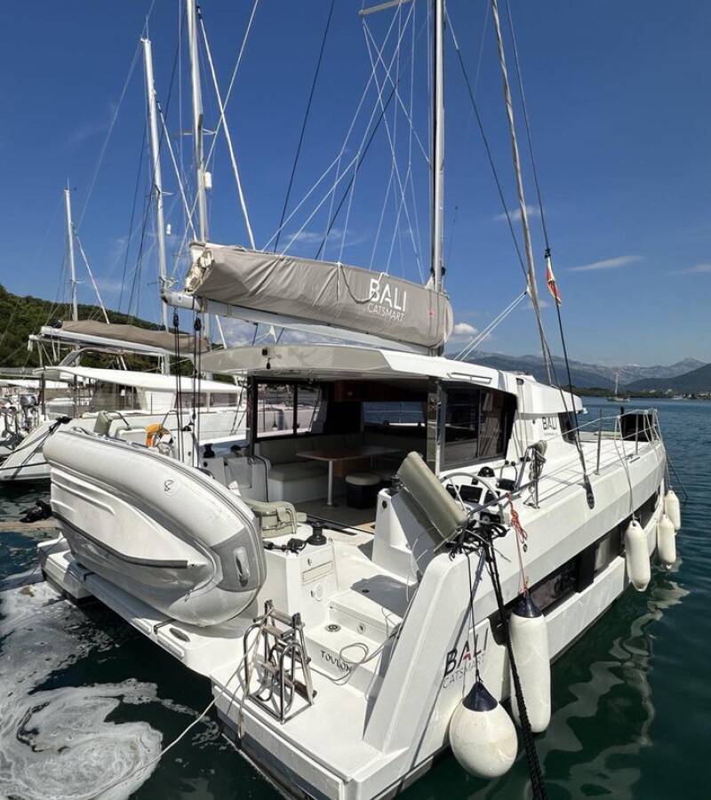 Die Bali Catsmart "BAY BREEZE V" bietet besonderen Komfort mit folgenden Ausstattungsmerkmalen: Tiefkühlfach, Cockpit Kissen, Badeplattform, Elektrische Toilette, Solar Panel.