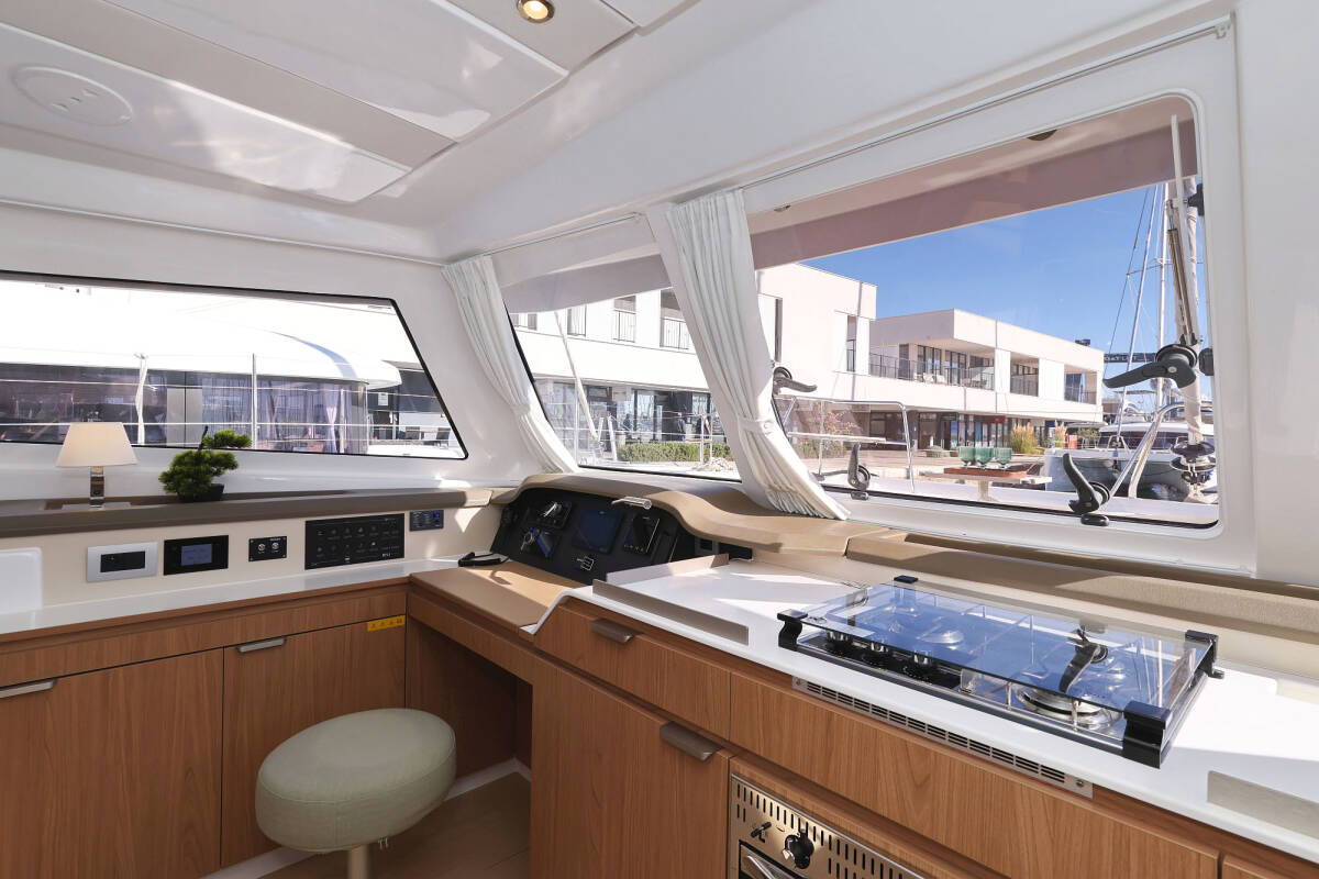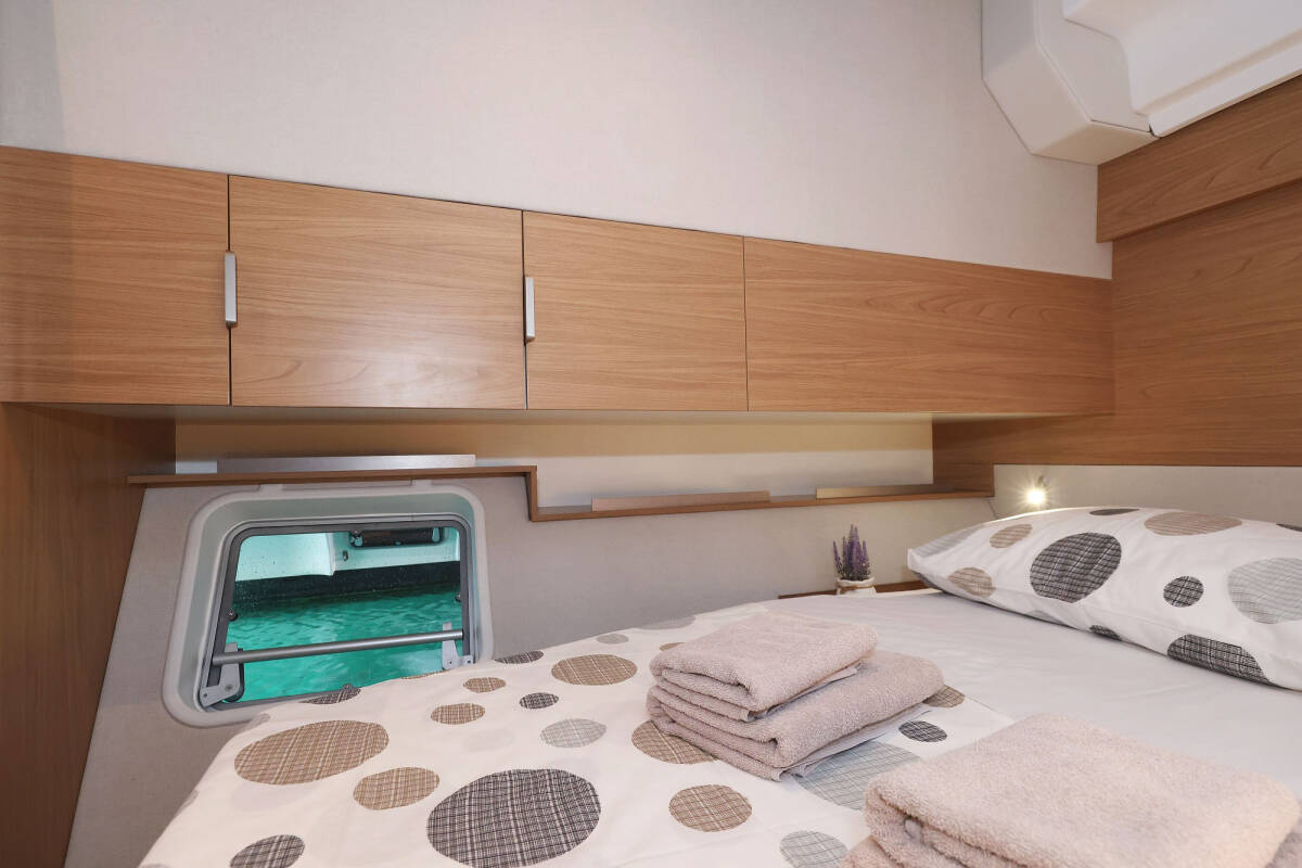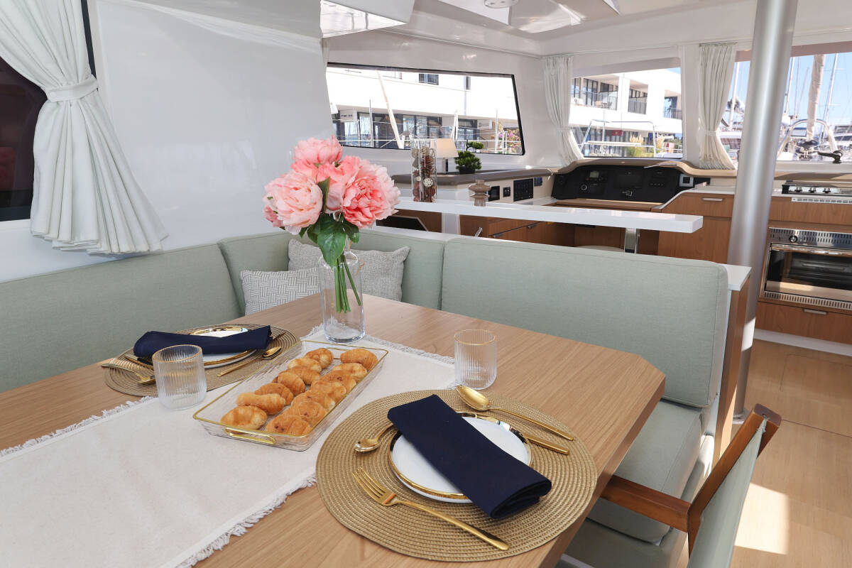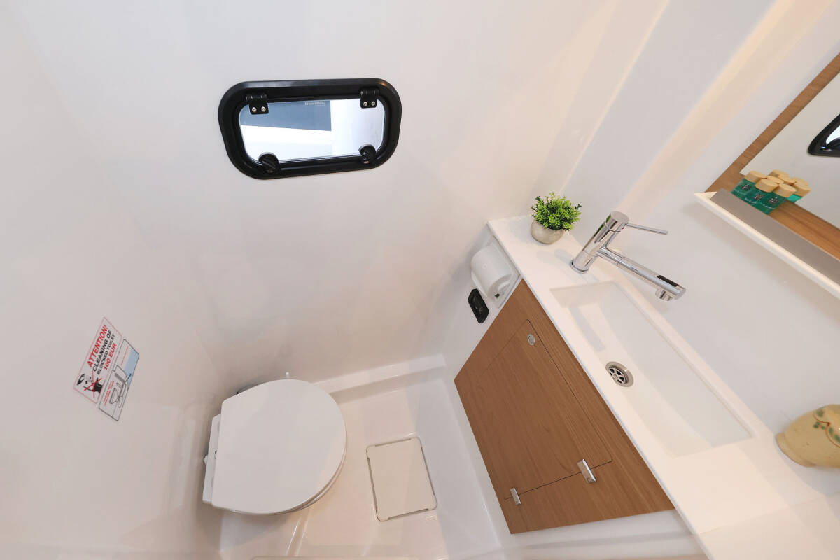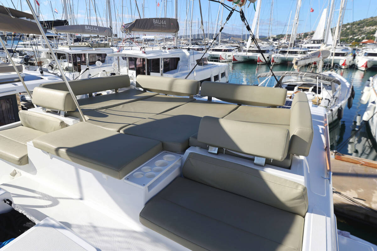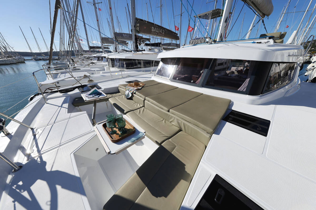 Die Bali Catspace "Sapphire" bietet besonderen Komfort mit folgenden Ausstattungsmerkmalen: Tiefkühlfach, Cockpit Kissen, Badeplattform, Inverter, Elektrische Toilette, Solar Panel.