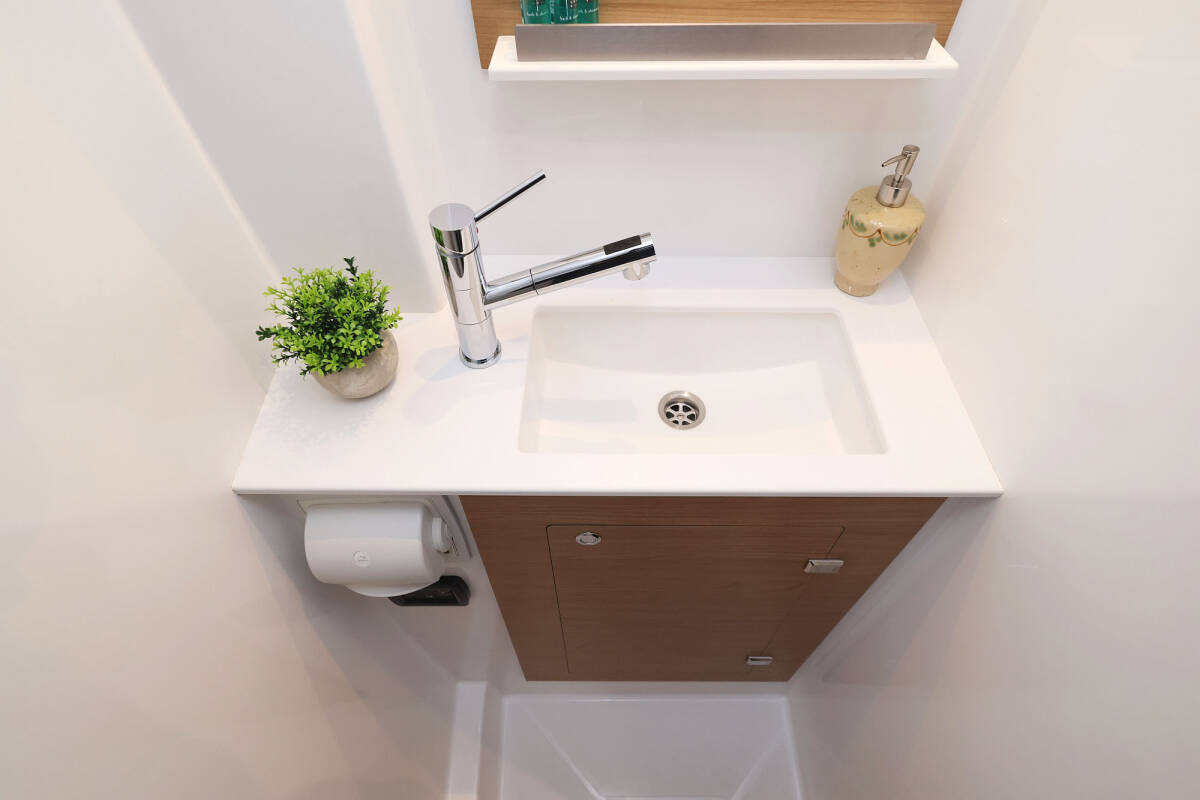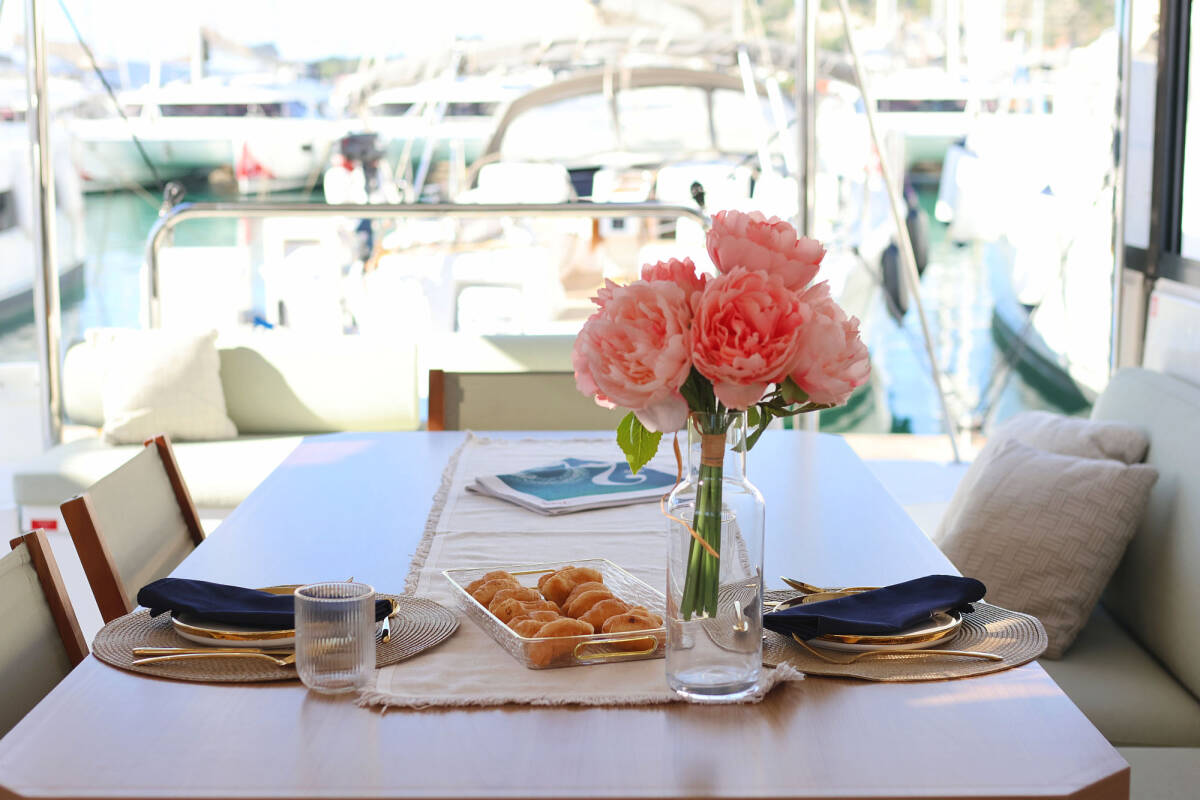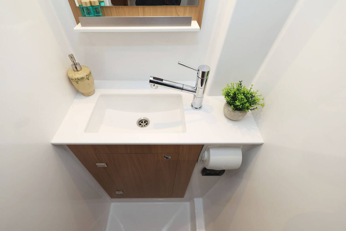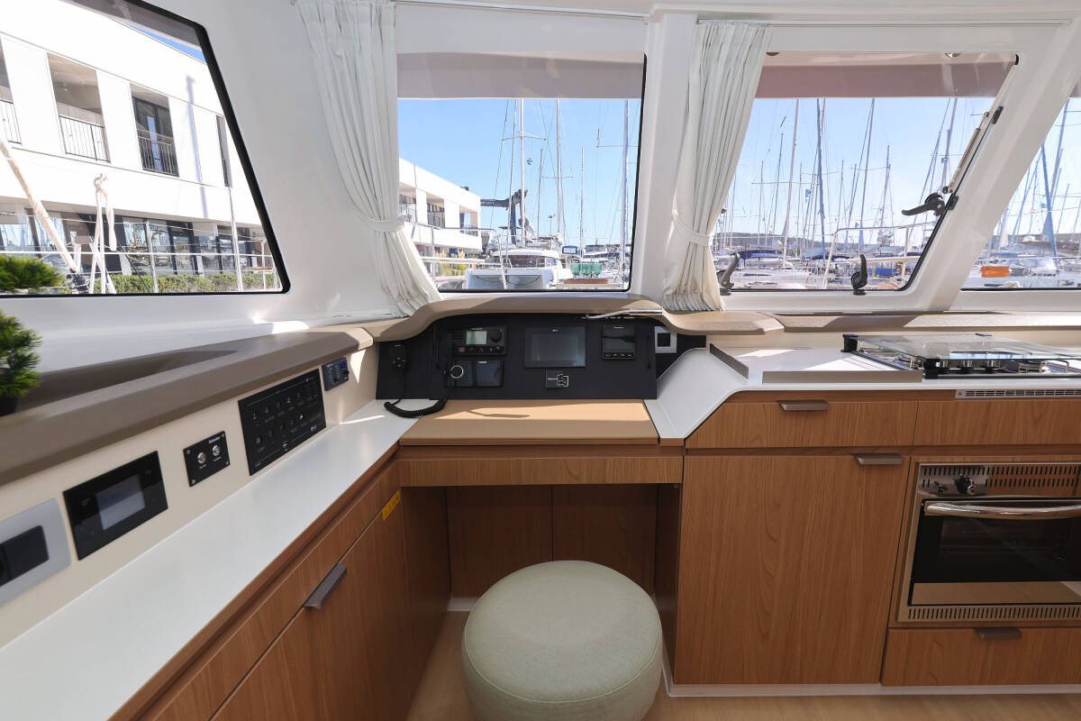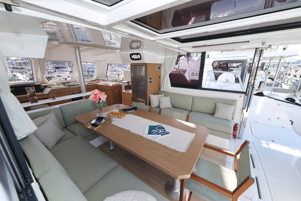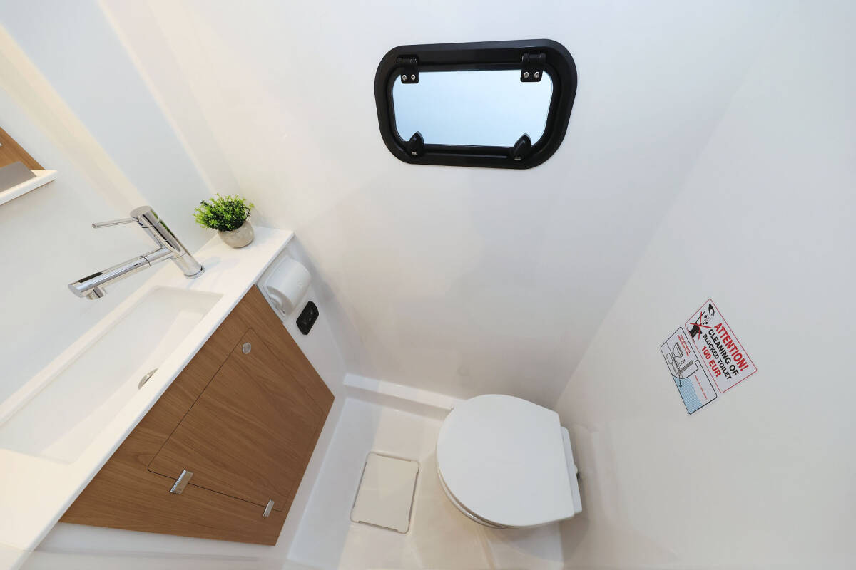 Die Bali Catspace "Sapphire" bietet besonderen Komfort mit folgenden Ausstattungsmerkmalen: Tiefkühlfach, Cockpit Kissen, Badeplattform, Inverter, Elektrische Toilette, Solar Panel.