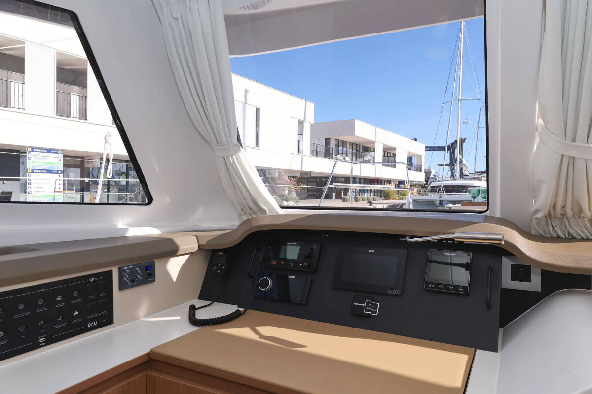 Die Bali Catspace "Sapphire" ist ausgestattet mit einem Großsegel und einem Genoa sowie einer Autopilot, GPS Kartenplotter - Cockpit.