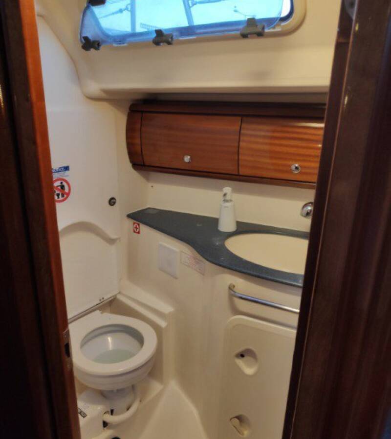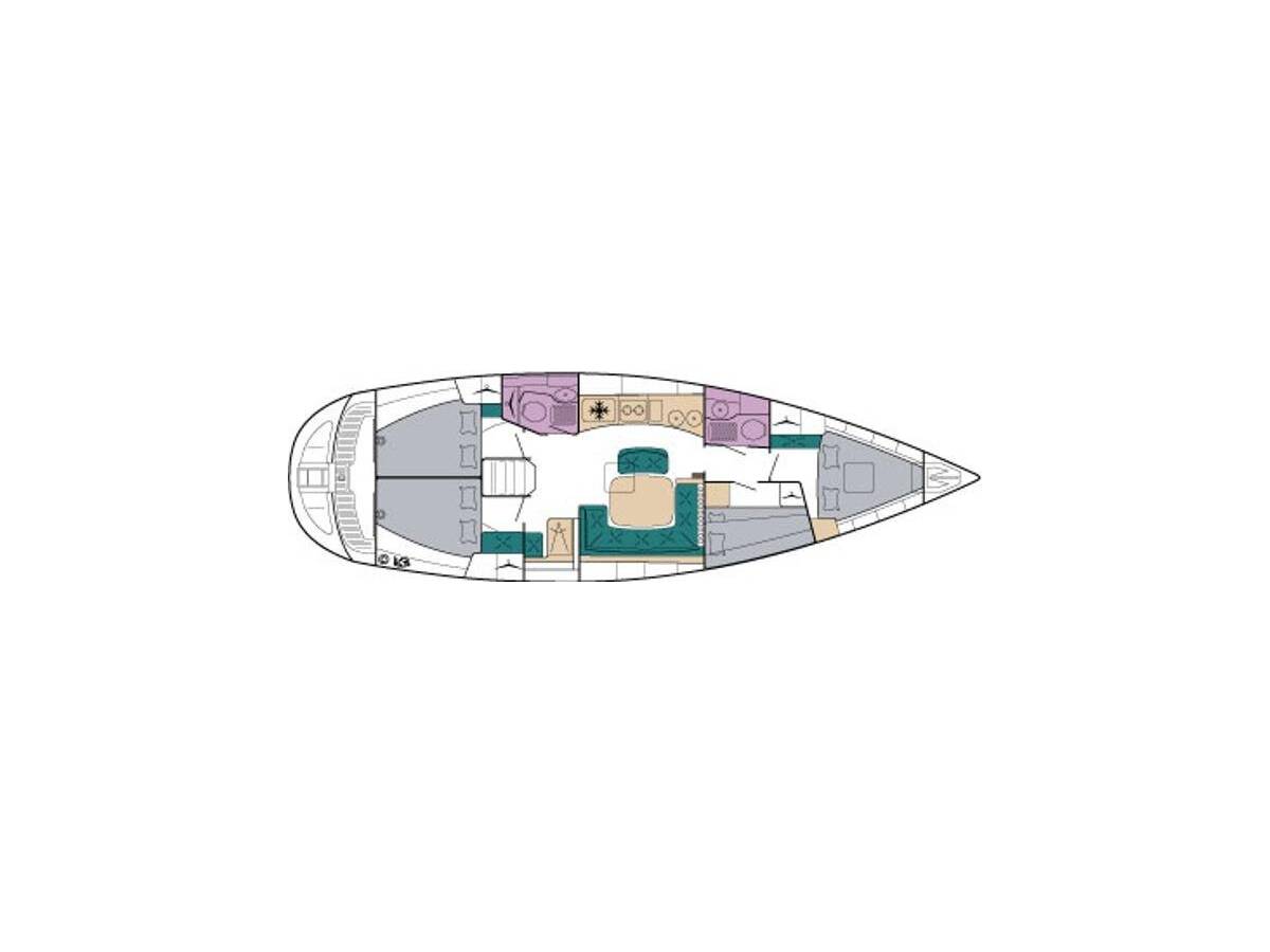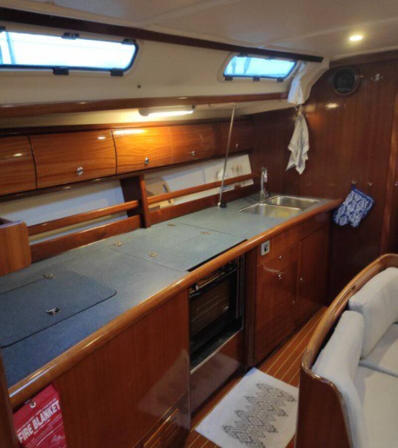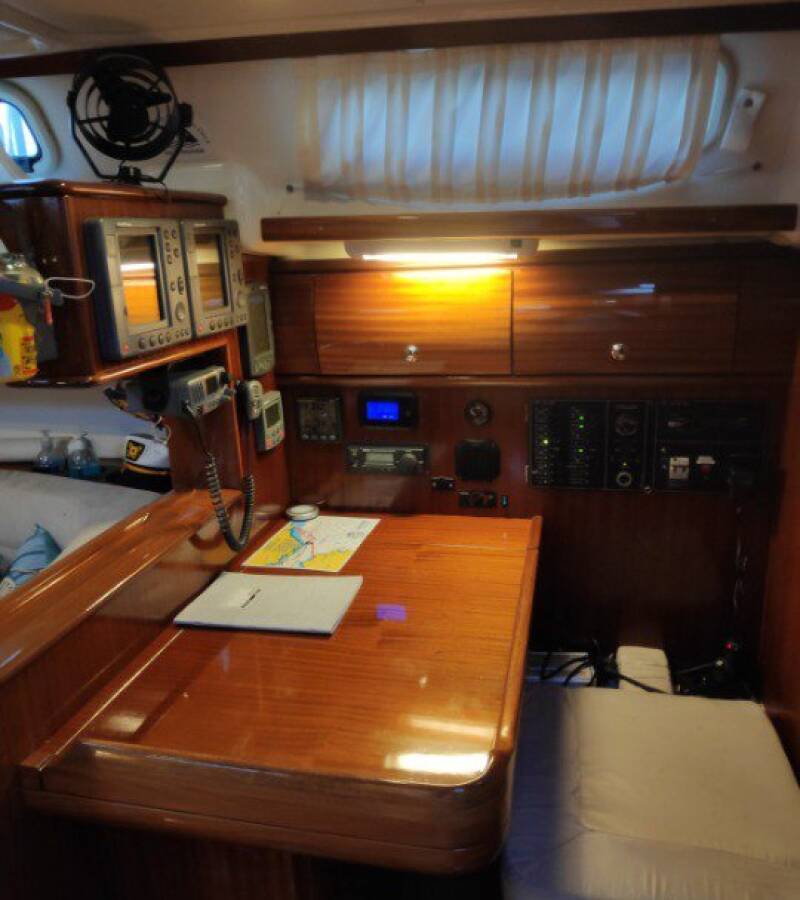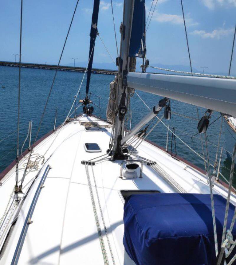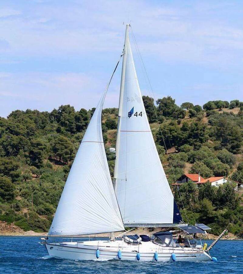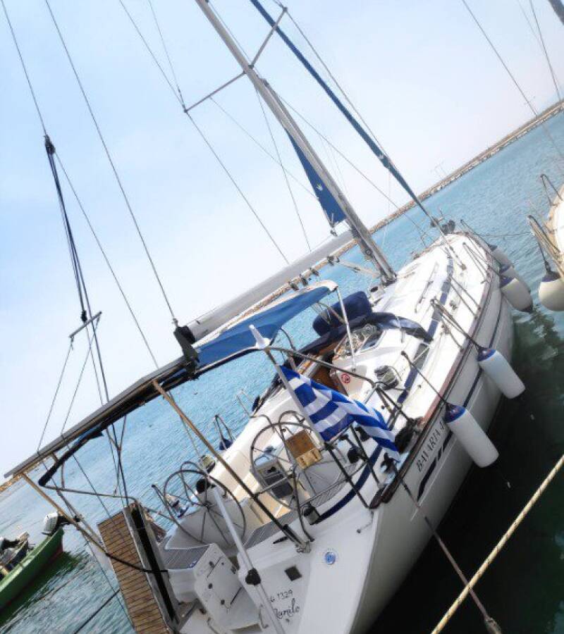 Die Bavaria 44 "Argonautis" ist ausgestattet mit einem Großsegel und einem Genoa sowie einer Bimini Top, Autopilot, Sprayhood.