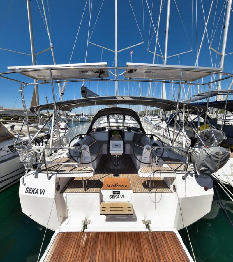 Die Bavaria C38 "Seka VI" bietet besonderen Komfort mit folgenden Ausstattungsmerkmalen: Bugstrahlruder, Cockpit Kissen, Solar Panel.