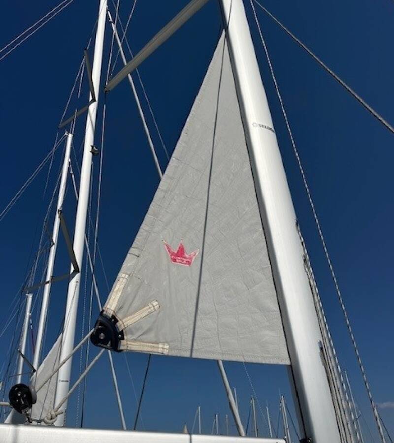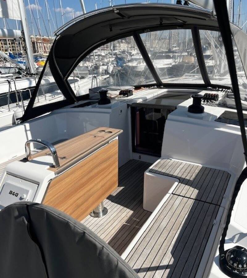 Die Bavaria C42 "Ulysse 1" ist ausgestattet mit einem Großsegel und einem Genoa sowie einer Bimini Top, Autopilot, Sprayhood, Teak im Cockpit.
