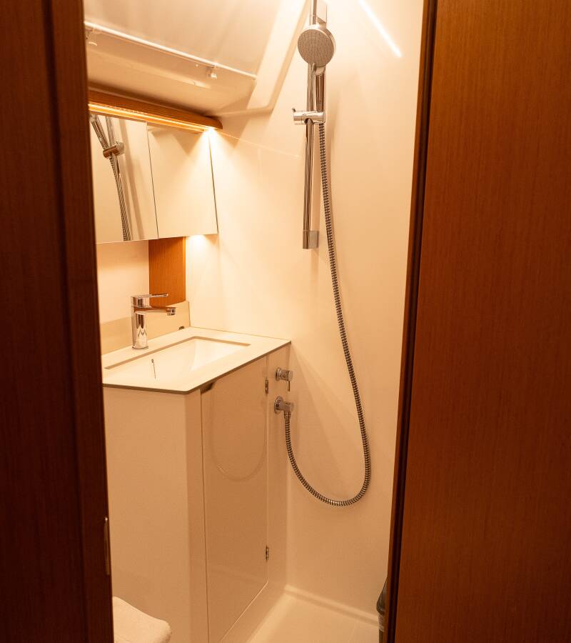 Die Bavaria C46 "Arke" bietet besonderen Komfort mit folgenden Ausstattungsmerkmalen: Bugstrahlruder, Generator, Klimaanlage, Cockpit Kissen, Badeplattform, Inverter, Elektrische Toilette, Solar Panel.