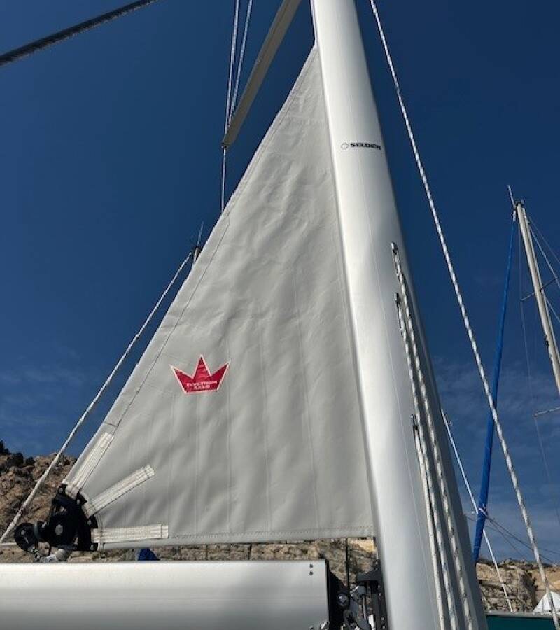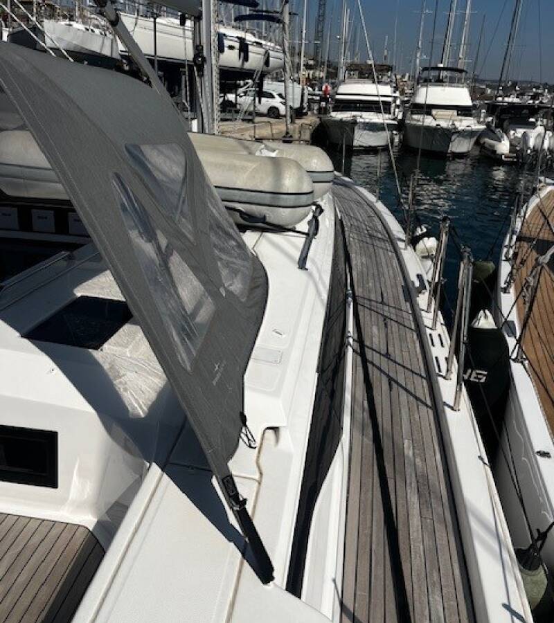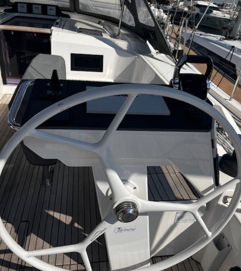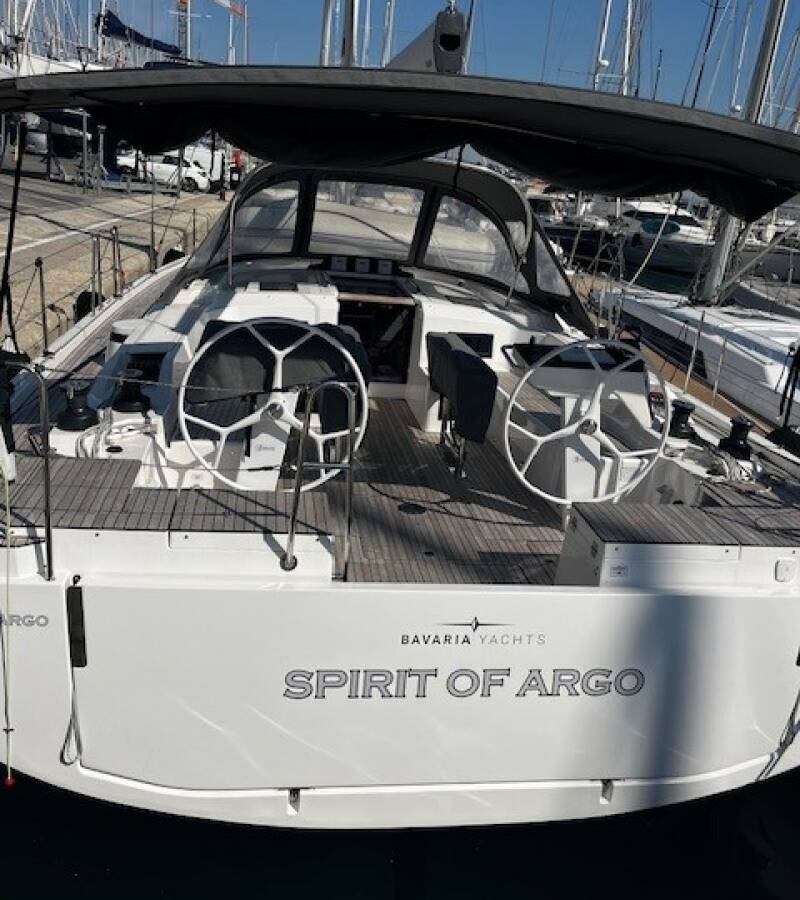 Die Bavaria C46 "Spirit of Argo" ist ausgestattet mit einem Großsegel und einem Genoa sowie einer Bimini Top, Autopilot, Sprayhood, Teak im Cockpit.