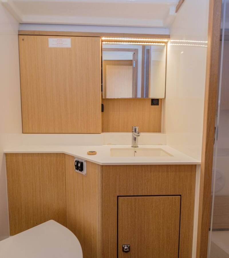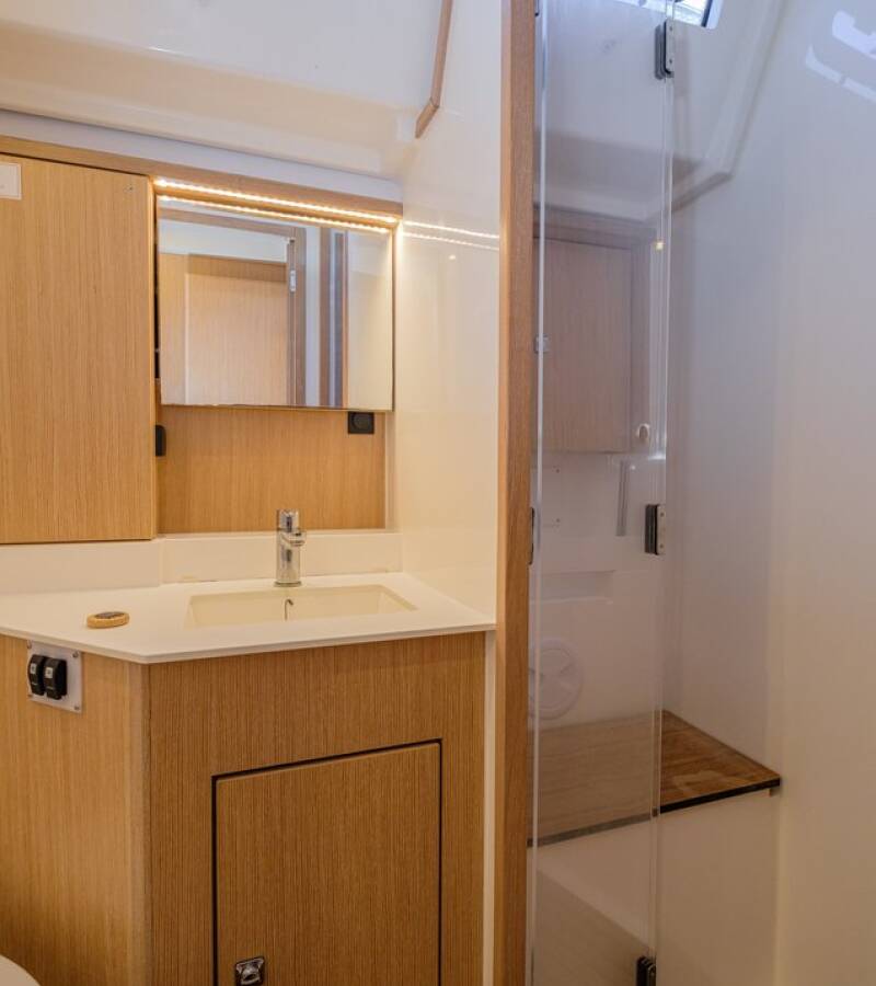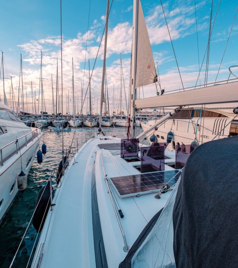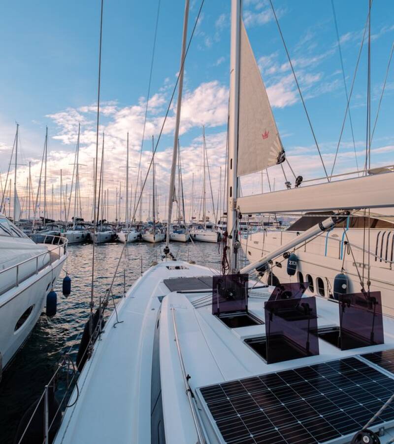 Die Bavaria C57 "Ghost" bietet besonderen Komfort mit folgenden Ausstattungsmerkmalen: Bugstrahlruder, Generator, Klimaanlage, Tiefkühlfach, Cockpit Kissen, Badeplattform, Elektrische Toilette, Solar Panel.