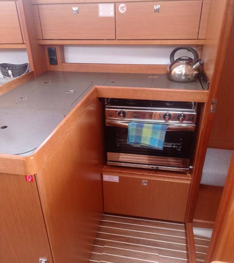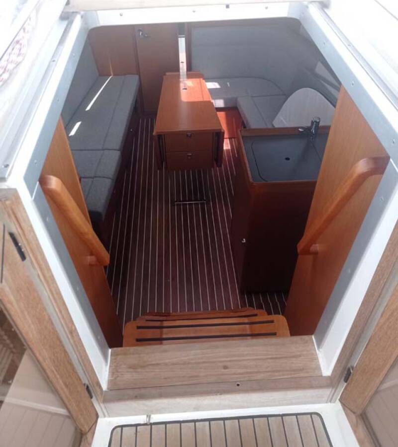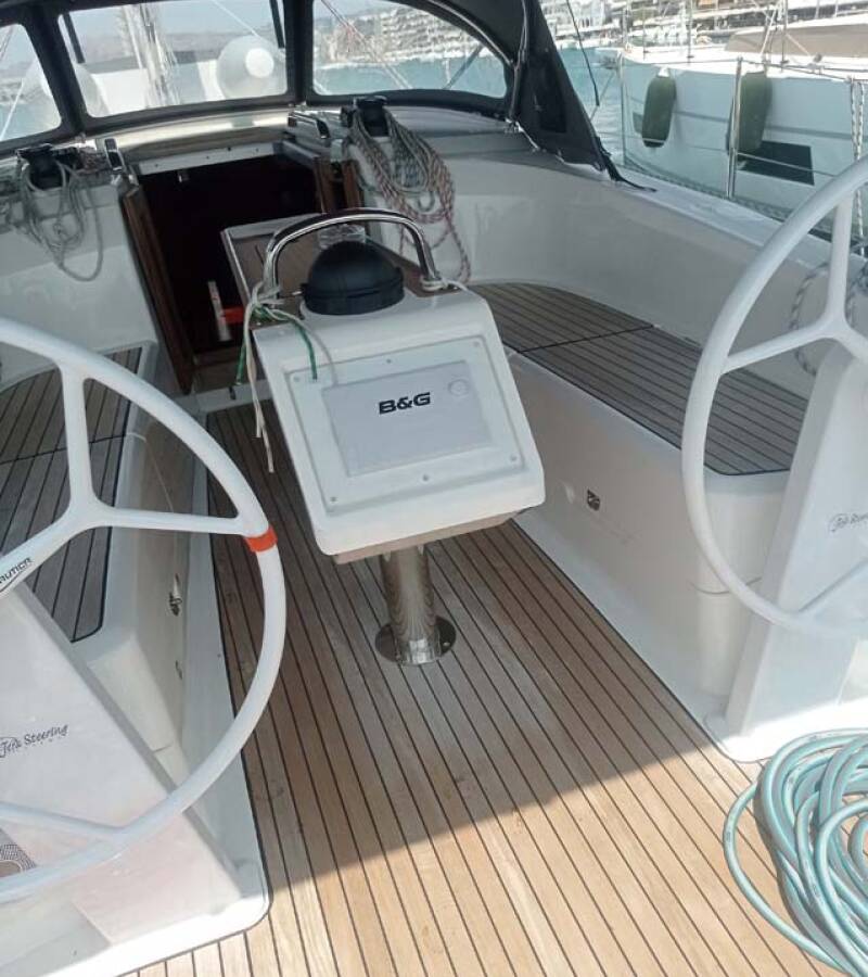 Die Bavaria Cruiser 34 "Licence to chill" ist ausgestattet mit einem Großsegel und einem Genoa sowie einer Bimini Top, Autopilot, Sprayhood, Heizung, Teak im Cockpit, GPS Kartenplotter - Cockpit.