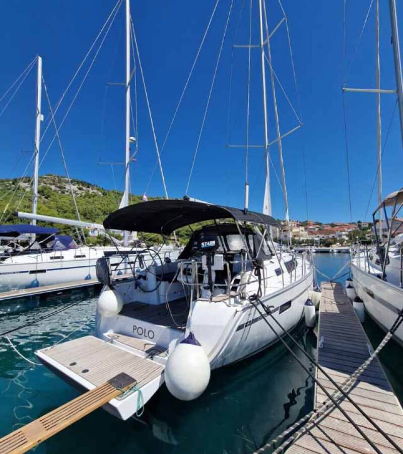 Die Bavaria Cruiser 37 "Polo" bietet besonderen Komfort mit folgenden Ausstattungsmerkmalen: Bugstrahlruder, Klimaanlage, Cockpit Kissen, Inverter, Elektrische Toilette, Solar Panel.