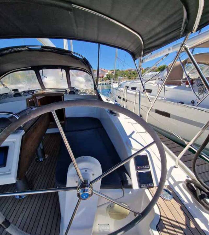 Die Bavaria Cruiser 37 "Polo" ist ausgestattet mit einem Großsegel und einem Genoa sowie einer Bimini Top, Autopilot, Sprayhood, Teak im Cockpit, GPS Kartenplotter - Cockpit.