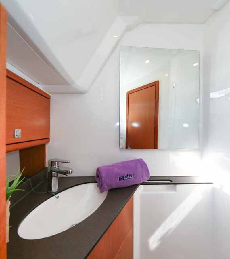 Die Bavaria Cruiser 46 "Challi" bietet besonderen Komfort mit folgenden Ausstattungsmerkmalen: Bugstrahlruder, Cockpit Kissen, Badeplattform, Inverter, Elektrische Toilette, Solar Panel.
