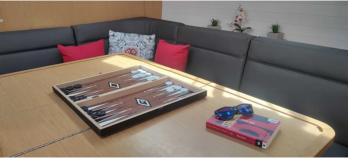 Die Bavaria Cruiser 46 "Kassandra" bietet besonderen Komfort mit folgenden Ausstattungsmerkmalen: Bugstrahlruder, Klimaanlage, Cockpit Kissen, Inverter, Elektrische Toilette, Solar Panel.