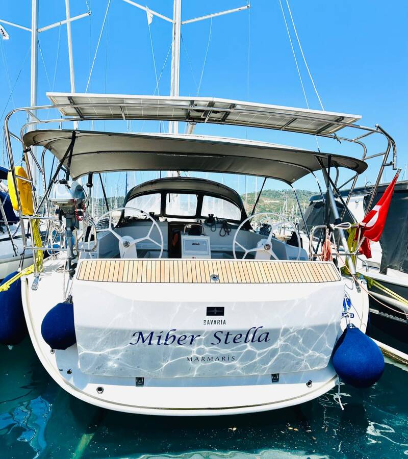 Die Bavaria Cruiser 46 "Miber Stella" bietet besonderen Komfort mit folgenden Ausstattungsmerkmalen: Bugstrahlruder, Cockpit Kissen, Badeplattform, Inverter, Solar Panel.