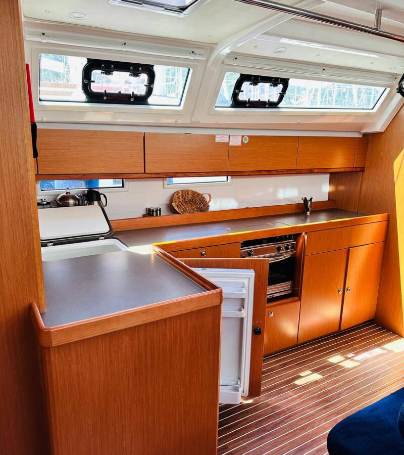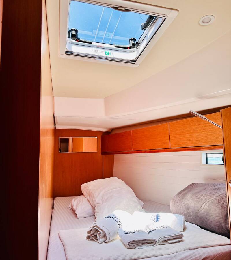 Die Bavaria Cruiser 46 "Miber Summerbird" bietet besonderen Komfort mit folgenden Ausstattungsmerkmalen: Bugstrahlruder, Cockpit Kissen, Badeplattform, Inverter, Solar Panel.