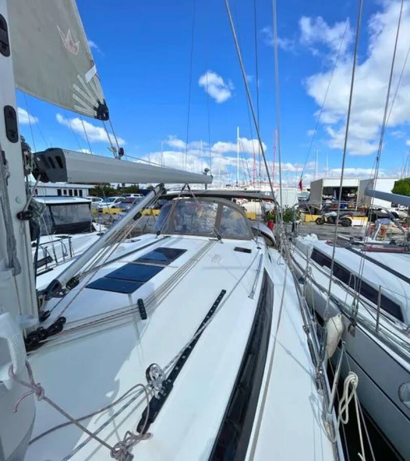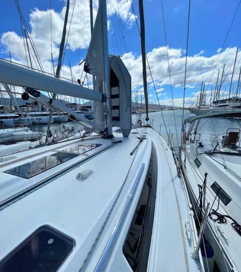 Die Bavaria Cruiser 51 "Prince Nikolaos" ist ausgestattet mit einem Großsegel und einem Genoa sowie einer Bimini Top, Autopilot, Sprayhood, GPS Kartenplotter - Cockpit.