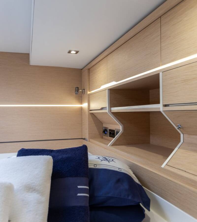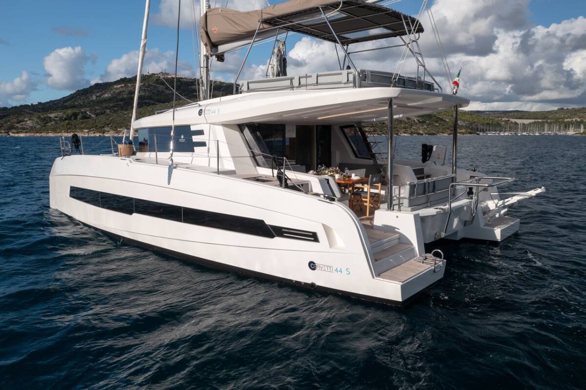 Die Cervetti 44 "Bela" bietet besonderen Komfort mit folgenden Ausstattungsmerkmalen: Generator, Klimaanlage, Cockpit Kissen, Elektrische Toilette, Spülmaschine, Solar Panel.