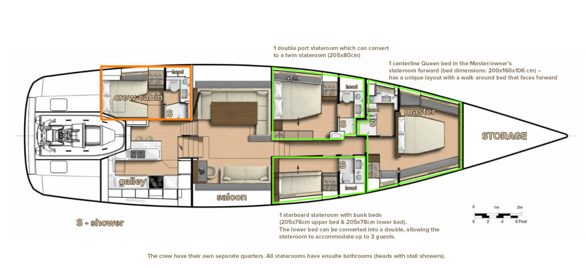 Die CNB 76 "Bubbles" bietet besonderen Komfort mit folgenden Ausstattungsmerkmalen: Bugstrahlruder, Generator, Klimaanlage, Tiefkühlfach, Waschmaschine, Badeplattform, Inverter, Elektrische Toilette, Spülmaschine.