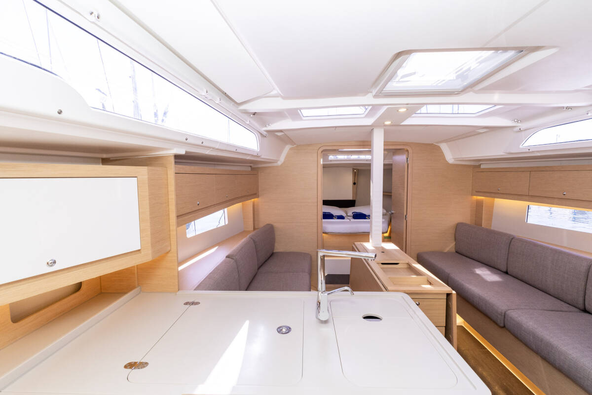 Die Dufour 37 "Nessie" bietet besonderen Komfort mit folgenden Ausstattungsmerkmalen: Bugstrahlruder, Cockpit Kissen, Badeplattform, Elektrische Toilette, Solar Panel, Griller im Cockpit.