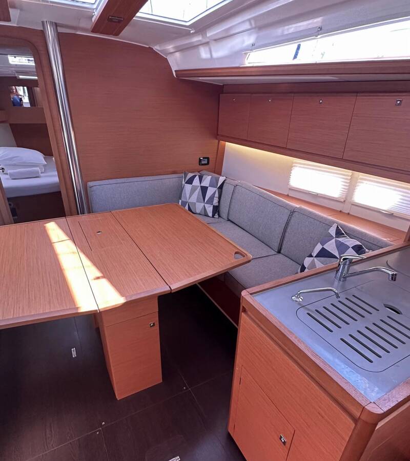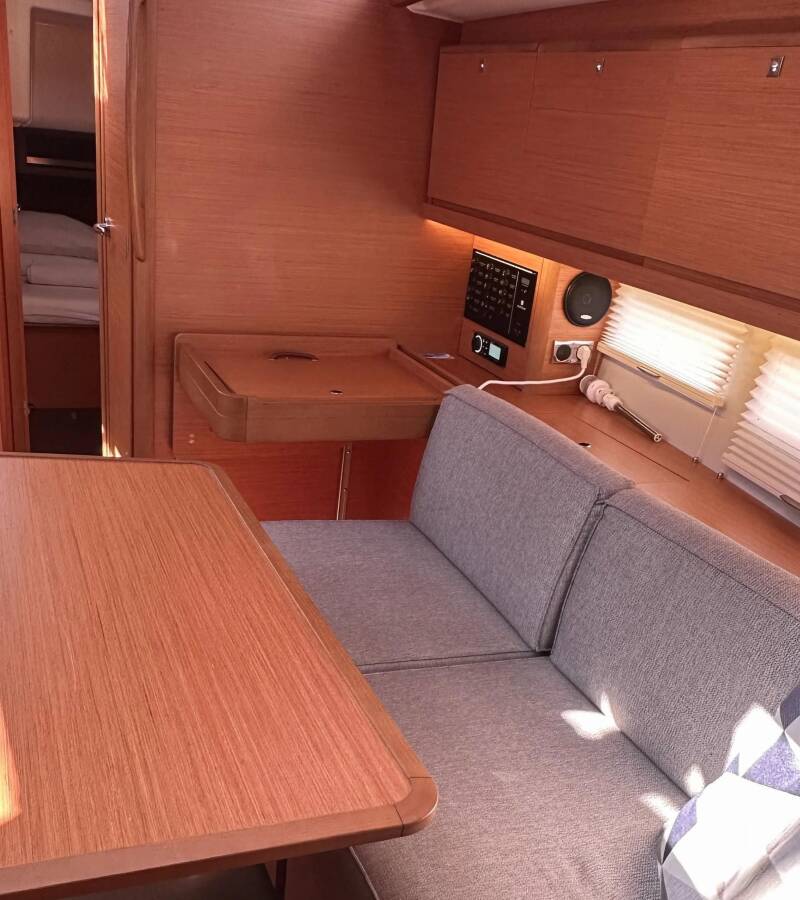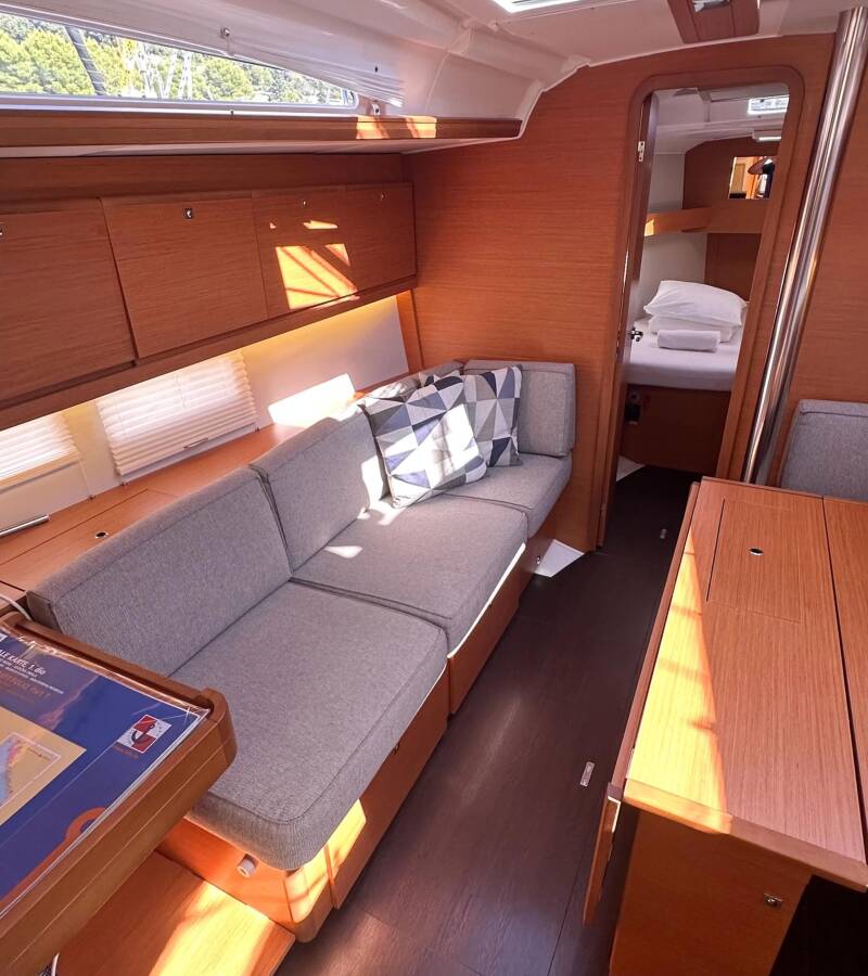 Die Dufour 390 GL "Andela" bietet besonderen Komfort mit folgenden Ausstattungsmerkmalen: Bugstrahlruder, Klimaanlage, Cockpit Kissen, Badeplattform, Griller im Cockpit.