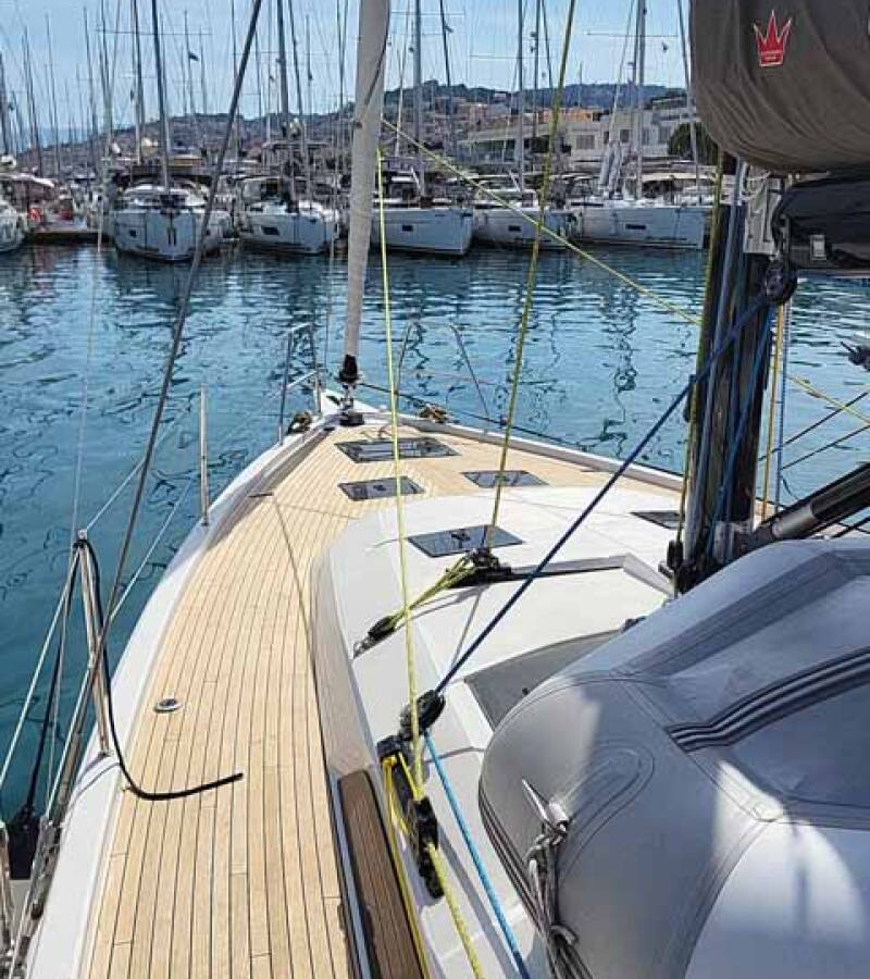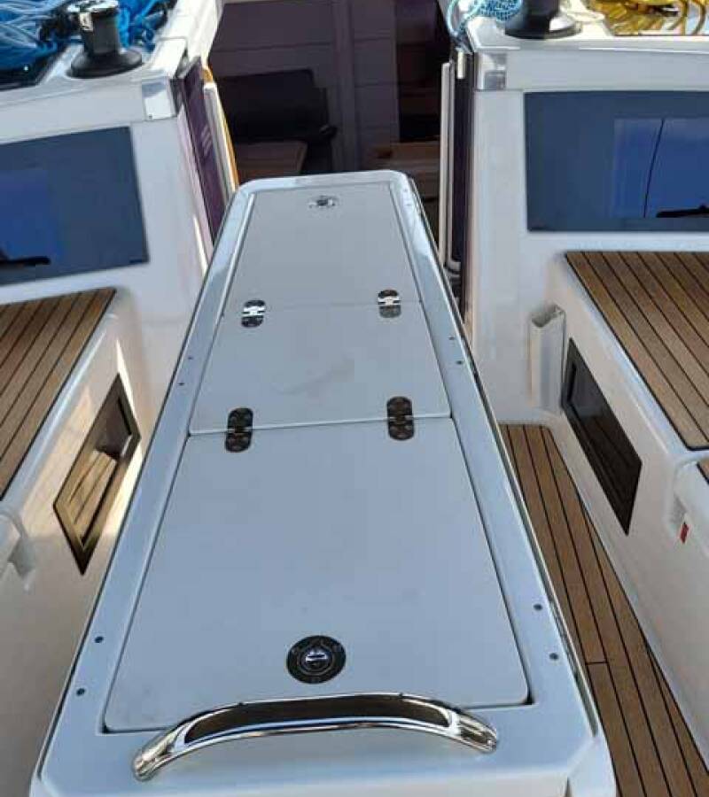Die Dufour 41 Performance "Makani" ist ausgestattet mit einem Großsegel und einem Genoa sowie einer Bimini Top, Autopilot, Sprayhood, Heizung, Teak im Cockpit, GPS Kartenplotter - Cockpit.