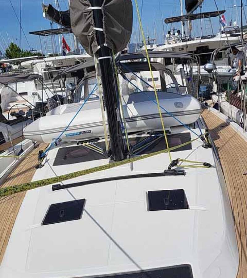 Die Dufour 41 Performance "Makani" bietet besonderen Komfort mit folgenden Ausstattungsmerkmalen: Bugstrahlruder, Klimaanlage, Cockpit Kissen, Inverter, Solar Panel, Griller im Cockpit.