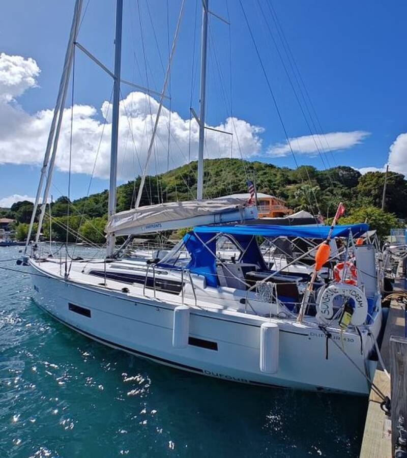 Die Dufour 430 "Sunshine Daydream" bietet besonderen Komfort mit folgenden Ausstattungsmerkmalen: Bugstrahlruder, Generator, Klimaanlage, Tiefkühlfach, Inverter, Elektrische Toilette.