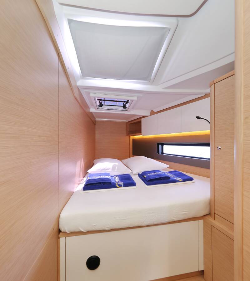 Die Dufour 44 "Blues" bietet besonderen Komfort mit folgenden Ausstattungsmerkmalen: Bugstrahlruder, Klimaanlage, Cockpit Kissen, Badeplattform, Inverter, Elektrische Toilette, Solar Panel, Griller im Cockpit.