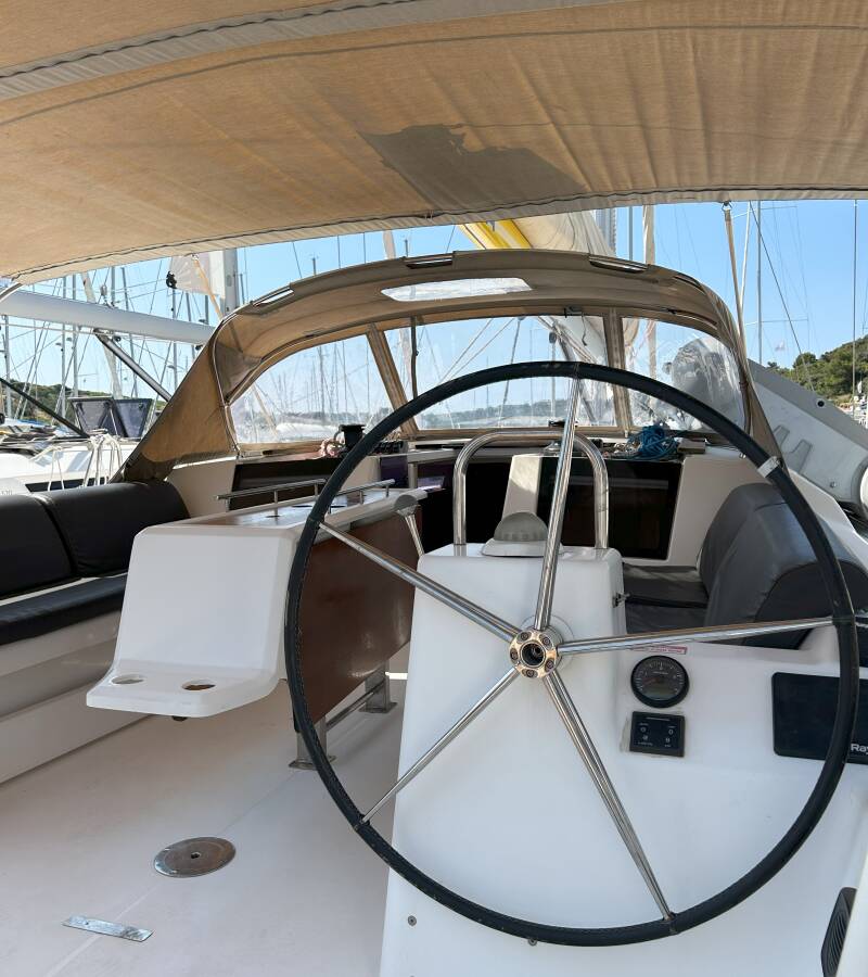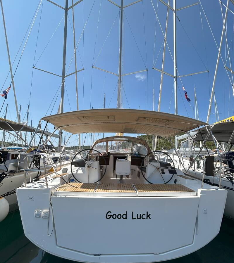 Die Dufour 460 GL "Good Luck" ist ausgestattet mit einem Großsegel und einem Genoa sowie einer Bimini Top, Autopilot, Sprayhood.