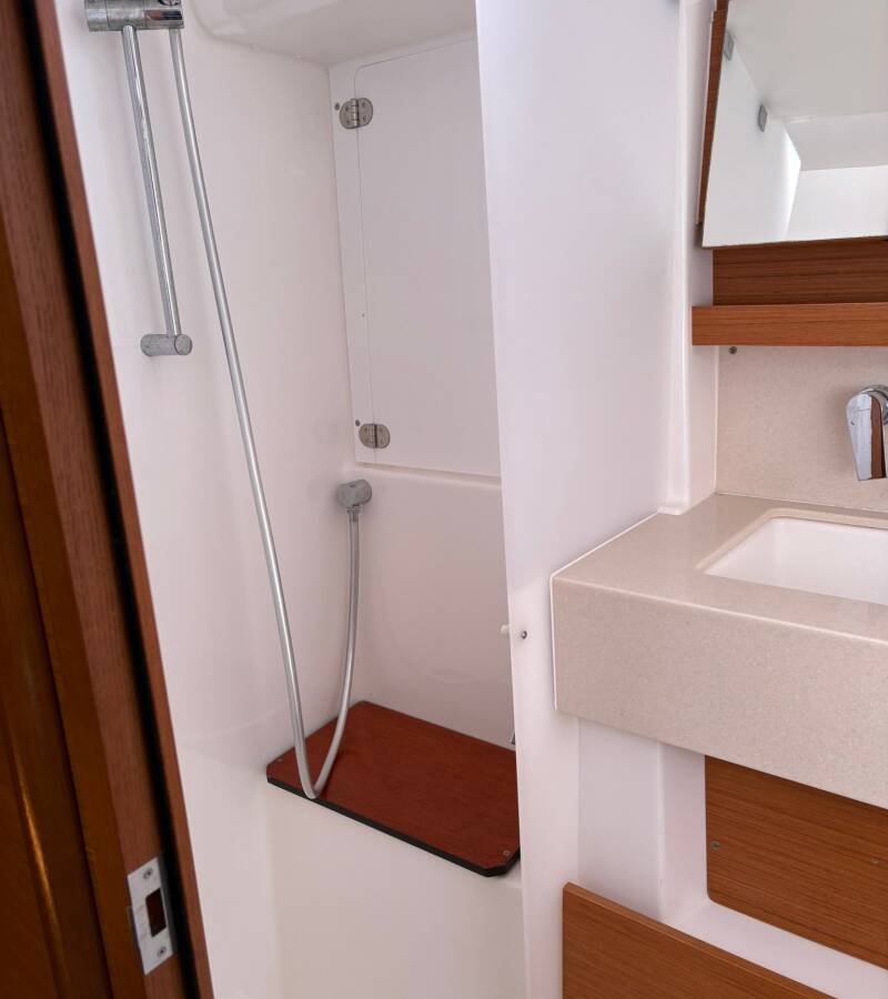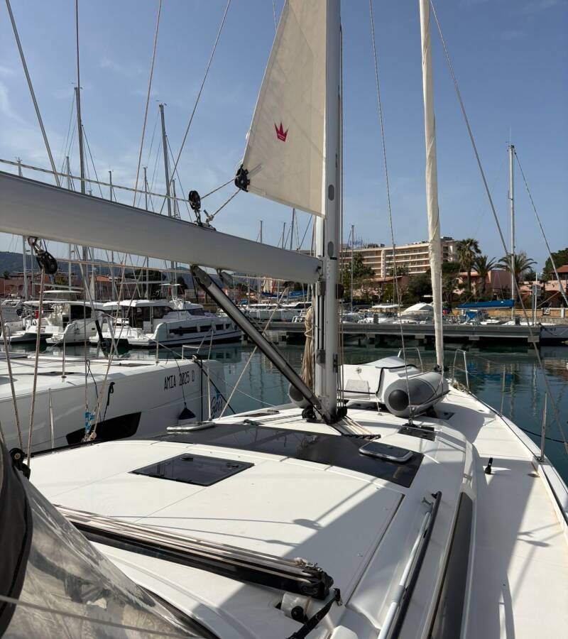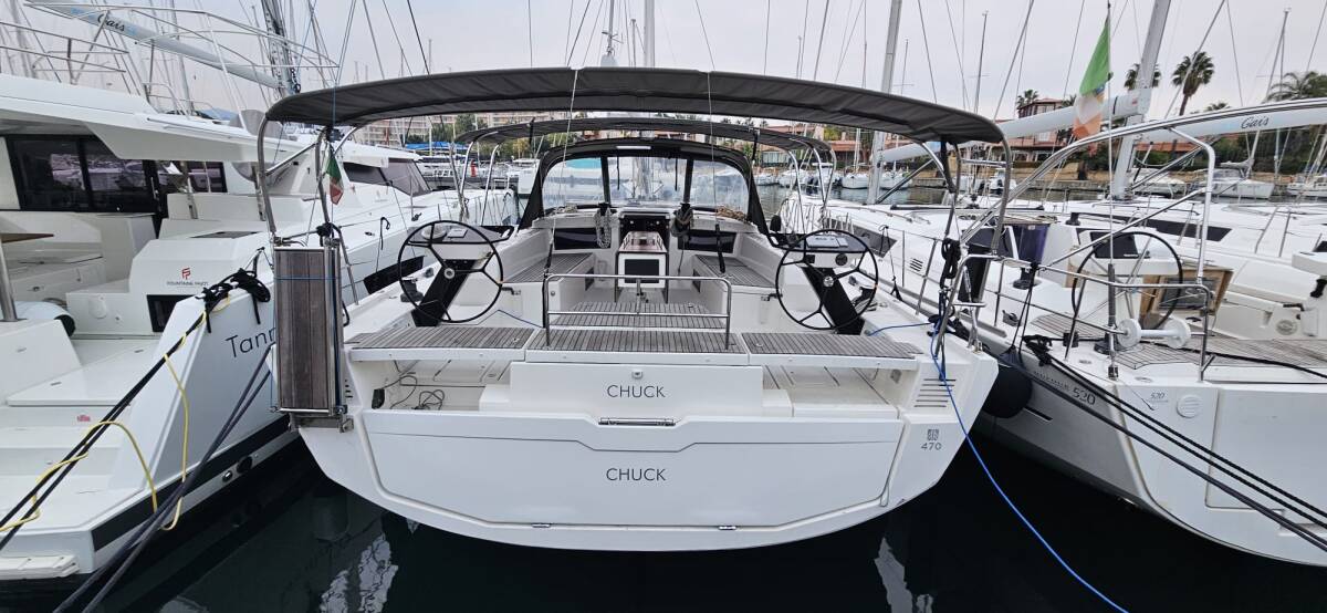 Die Dufour 470 "Chuck" bietet besonderen Komfort mit folgenden Ausstattungsmerkmalen: Bugstrahlruder, Klimaanlage, Badeplattform, Elektrische Toilette.