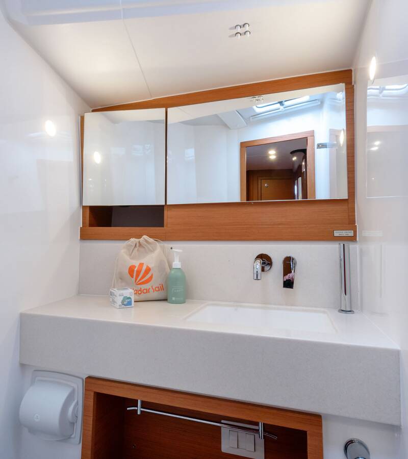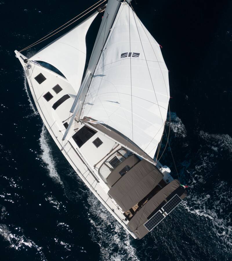 Die Dufour 470 "Dione" bietet besonderen Komfort mit folgenden Ausstattungsmerkmalen: Bugstrahlruder, Cockpit Kissen, Badeplattform, Inverter, Elektrische Toilette, Solar Panel, Griller im Cockpit.