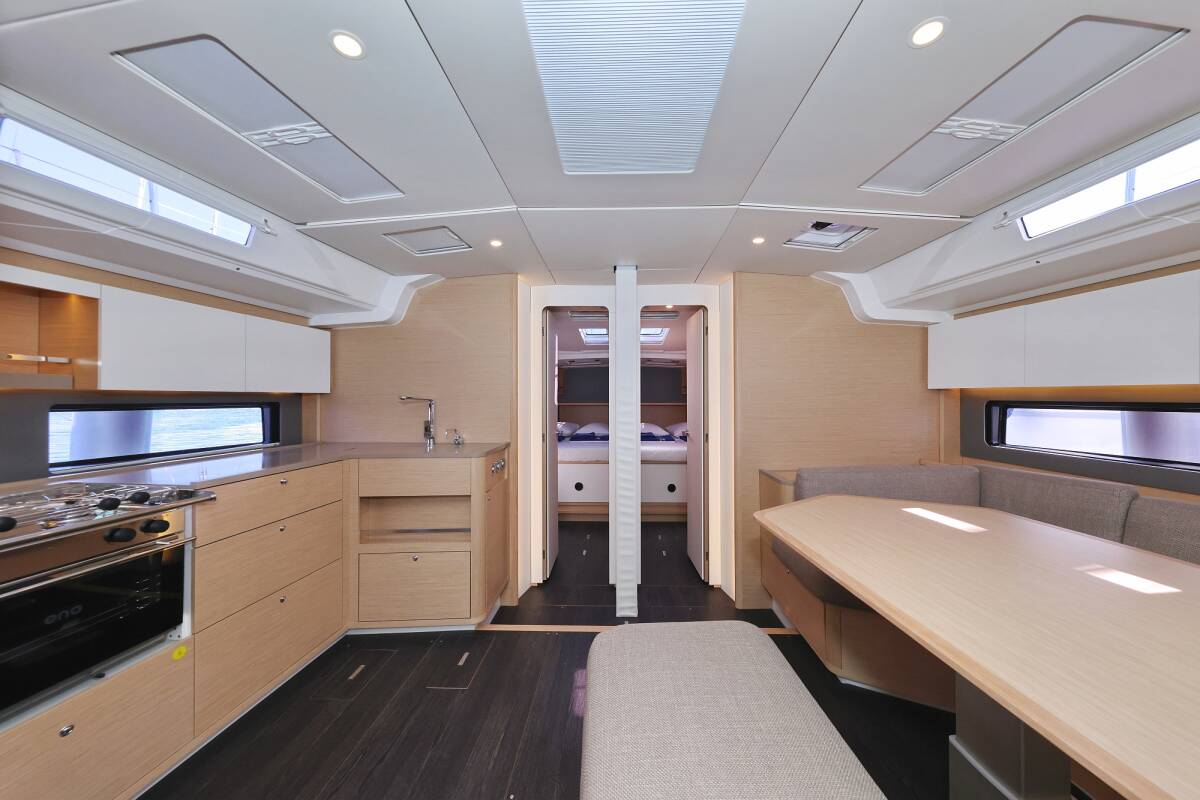 Die Dufour 48 "Ocean Rose" bietet besonderen Komfort mit folgenden Ausstattungsmerkmalen: Bugstrahlruder, Klimaanlage, Cockpit Kissen, Badeplattform, Inverter, Elektrische Toilette, Solar Panel, Griller im Cockpit.